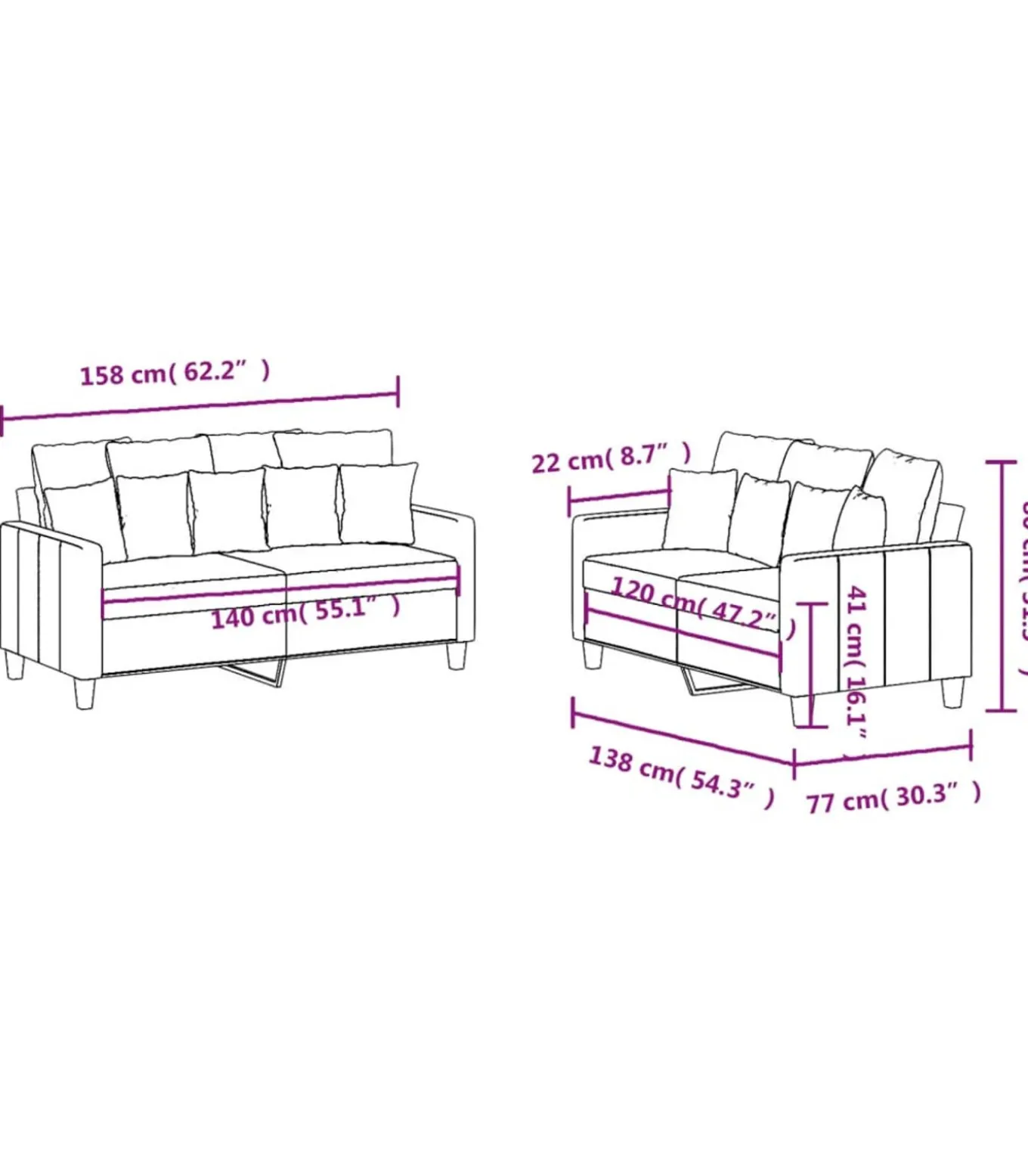 2–zitsbank (140 cm):