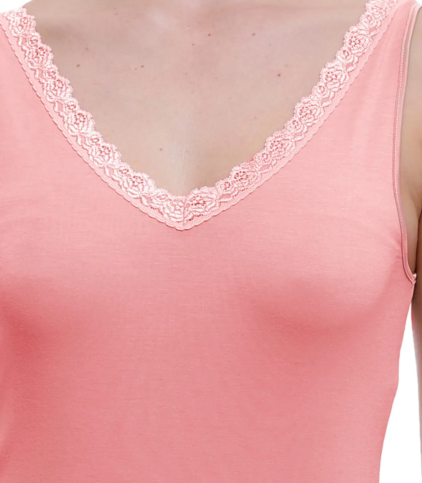 Knus en zacht onderarmshirt uit de Cosy–serie. Gemaakt van duurzaam en grondstofbesparend materiaal dat ook nog eens aaibaar en huidvriendelijk is. Het romantische kant bij de halslijn geeft de top een bijzonder vrouwelijke uitstraling. Met V–hals en brede bandjes.