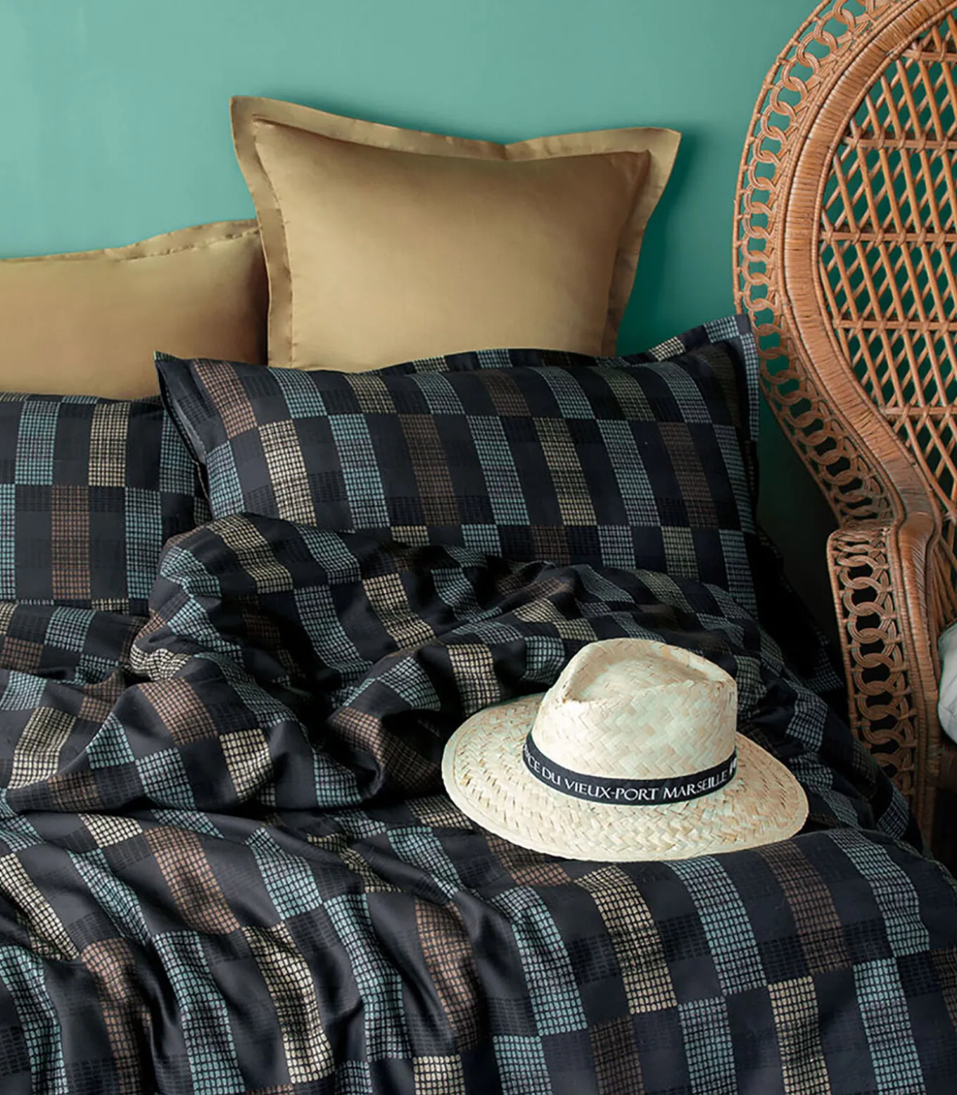 BEDRUKTE KATOENZIJD – 2 persoons beddengoed – 3 stuks: 1 dekbedovertrek 240×220 cm Knoopsluiting + 2 kussenslopen 63×63 cm met vlakke volants 3 cm. – Samenstelling 100% gekamd katoen 210 TC. (82 draden/cm2) Machinewasbaar op 60°C. OEKO–TEX gecertificeerd product: het Oeko–Tex® label garandeert dat gecertificeerde artikelen vrij zijn van schadelijke stoffen die schadelijk kunnen zijn voor de gezondheid.Dit beddengoed is ontworpen voor eindeloos comfort.De gebruikte vezel is gekamd katoen, wat het edelste deel van katoen is. De vezels zijn lang en zeer zacht.De weeftechniek van het satijnkatoen geeft het materiaal een stralende, zachte en zeer zijdeachtige uitstraling. De stof is elegant, duurzaam en zeer comfortabel. De kleuren zijn eigentijds, de lijn is puur en verfijnd, en de afwerkingen zijn minutieus.Voor een goede nachtrust, kiest u voor comfortabele en mooie lakens: uw welzijn is verzekerd….Om de glans van de kleuren te behouden, raden wij wasbeurten aan op 60 °.Als u kiest voor drogen in de droogtrommel, kies dan voor een gematigde temperatuur om de vezels te sparen.Uw beddengoed zal zachter worden na meerdere wasbeurten.