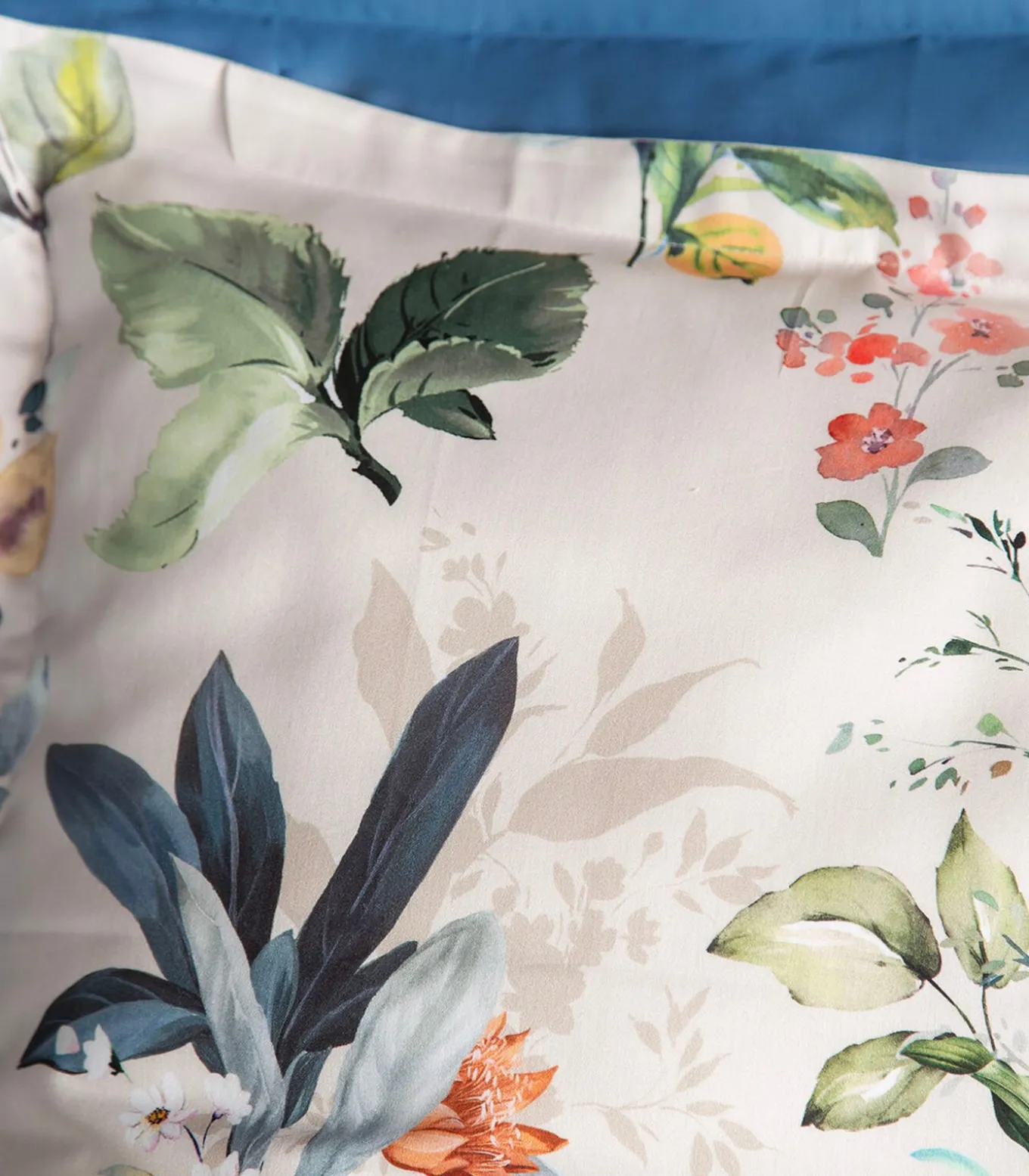 BEDRUKTE KATOENZIJD – 2 persoons beddengoed – 3 stuks: 1 dekbedovertrek 240×220 cm Knoopsluiting + 2 kussenslopen 63×63 cm met vlakke volants 3 cm. – Samenstelling 100% gekamd katoen 210 TC. (82 draden/cm2) Machinewasbaar op 60°C. OEKO–TEX gecertificeerd product: het Oeko–Tex® label garandeert dat gecertificeerde artikelen vrij zijn van schadelijke stoffen die schadelijk kunnen zijn voor de gezondheid.Dit beddengoed is ontworpen voor eindeloos comfort.De gebruikte vezel is gekamd katoen, wat het edelste deel van katoen is. De vezels zijn lang en zeer zacht.De weeftechniek van het satijnkatoen geeft het materiaal een stralende, zachte en zeer zijdeachtige uitstraling. De stof is elegant, duurzaam en zeer comfortabel. De kleuren zijn eigentijds, de lijn is puur en verfijnd, en de afwerkingen zijn minutieus.Voor een goede nachtrust, kiest u voor comfortabele en mooie lakens: uw welzijn is verzekerd….Om de glans van de kleuren te behouden, raden wij wasbeurten aan op 60 °.Als u kiest voor drogen in de droogtrommel, kies dan voor een gematigde temperatuur om de vezels te sparen.Uw beddengoed zal zachter worden na meerdere wasbeurten.