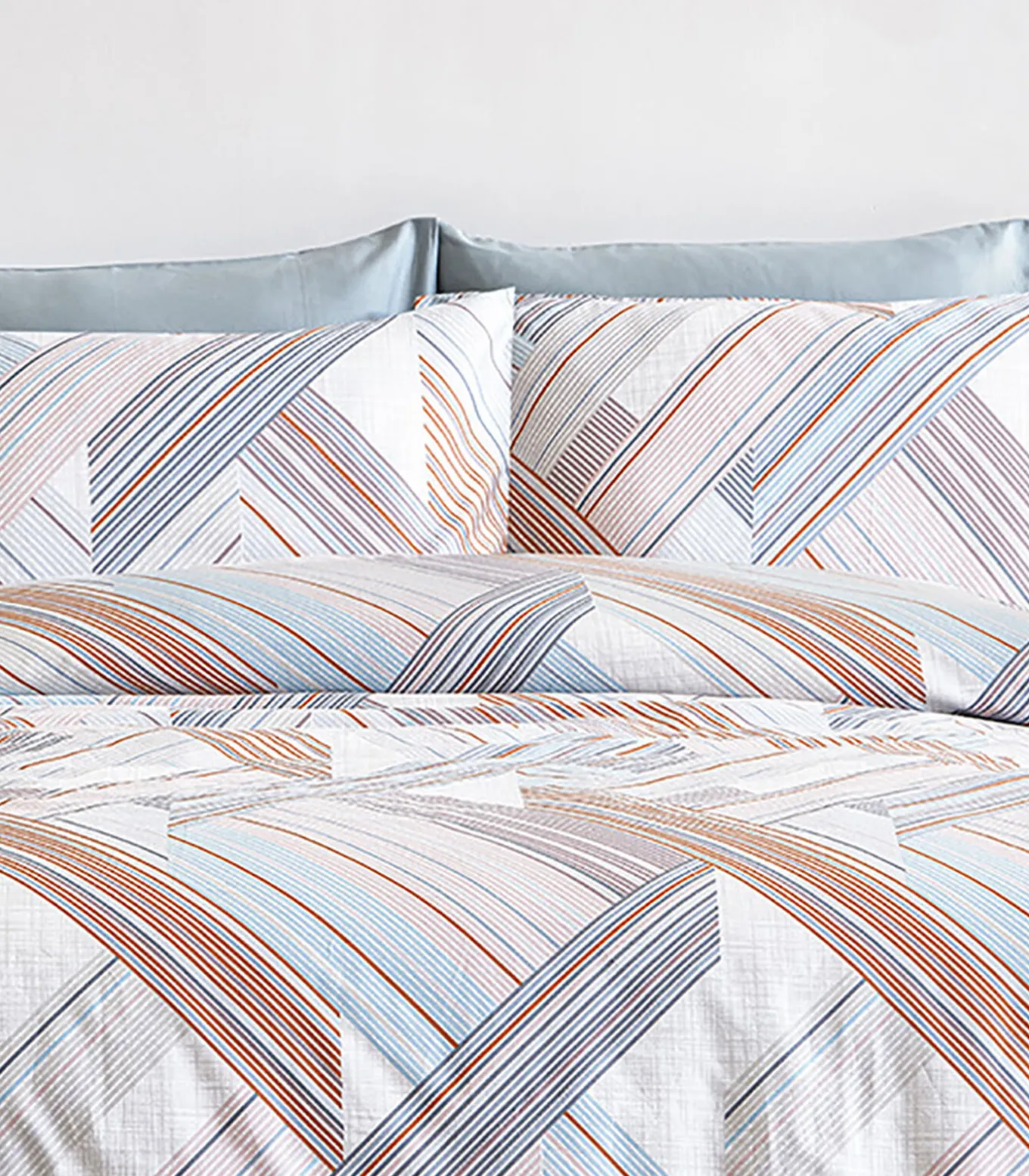 BEDRUKTE KATOENZIJD – 2 persoons beddengoed – 3 stuks: 1 dekbedovertrek 240×220 cm Knoopsluiting + 2 kussenslopen 65×65 cm – Samenstelling 100% gekamd katoen 200 TC. (80 draden/cm2) Machinewasbaar op 60°C. OEKO–TEX gecertificeerd product: het Oeko–Tex® label garandeert dat gecertificeerde artikelen vrij zijn van schadelijke stoffen die schadelijk kunnen zijn voor de gezondheid.Dit beddengoed is ontworpen voor eindeloos comfort.De gebruikte vezel is gekamd katoen, wat het edelste deel van katoen is. De vezels zijn lang en zeer zacht.De weeftechniek van het satijnkatoen geeft het materiaal een stralende, zachte en zeer zijdeachtige uitstraling. De stof is elegant, duurzaam en zeer comfortabel. De kleuren zijn eigentijds, de lijn is puur en verfijnd, en de afwerkingen zijn minutieus.Voor een goede nachtrust, kiest u voor comfortabele en mooie lakens: uw welzijn is verzekerd….Om de glans van de kleuren te behouden, raden wij wasbeurten aan op 60 °.Als u kiest voor drogen in de droogtrommel, kies dan voor een gematigde temperatuur om de vezels te sparen.Uw beddengoed zal zachter worden na meerdere wasbeurten.