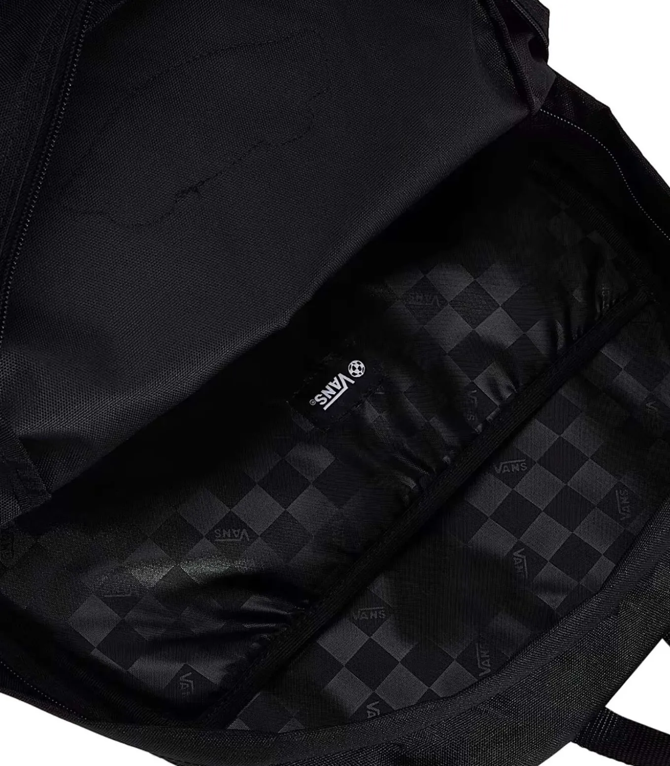De Vans 22L Old Skool Classic Board Rugzak in zwart/wit biedt een ideale mix van streetwear stijl en praktische opbergmogelijkheden. Met een opvallend Vans–logo op de voorkant, beschikt hij over een ruim hoofdvak, een ritsvak aan de voorkant voor gemakkelijke toegang tot essentiële spullen en zijvakken voor waterflessen. De verstelbare, gewatteerde schouderbanden en de gewatteerde achterkant zorgen voor draagcomfort, terwijl het binnenvak voor een 15–inch laptop je elektronica veilig opbergt. Duurzame materialen garanderen een lange levensduur, waardoor deze rugzak geschikt is voor school, woon–werkverkeer of reizen. Met zijn iconische Vans–look en functionele kenmerken is het een betrouwbare en stijlvolle draagtas voor elke gelegenheid. Afmetingen: H 42 cm x B 32 cm x D 12 cm. Inhoud: 22 liter.