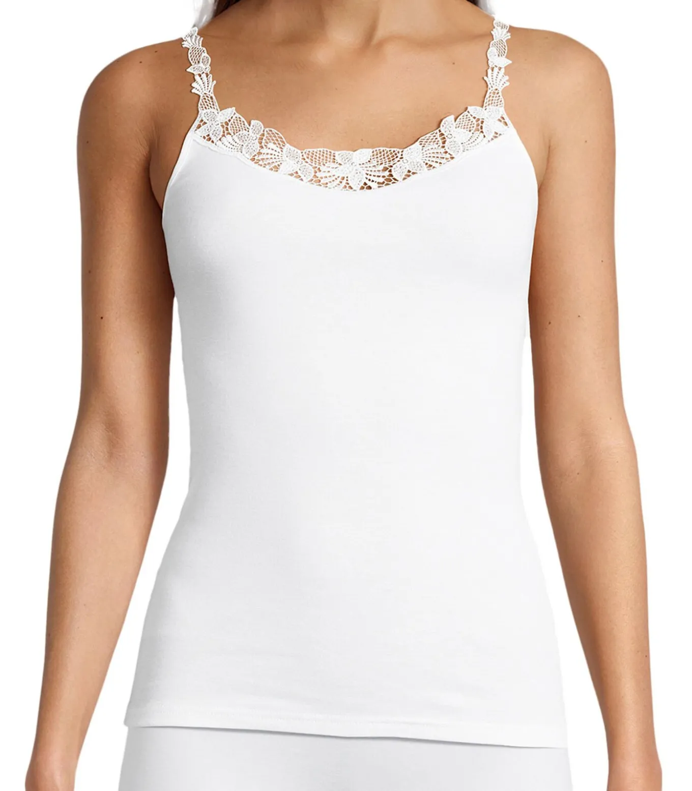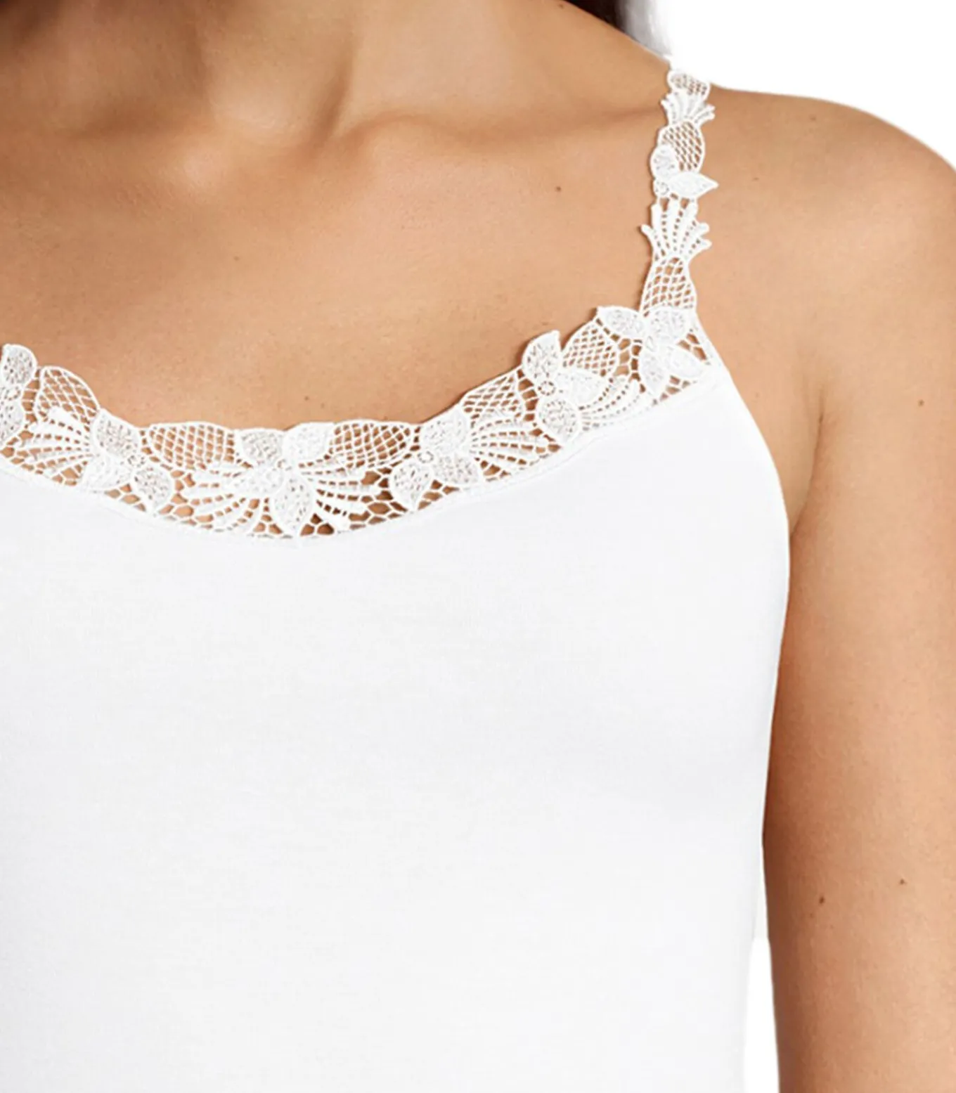 Vrouwelijk, stijlvol en heerlijk comfortabel – het strappy shirt met delicaat kanten randje aan de halslijn en bandjes voegt een elegante touch toe en kan onder kleding gedragen worden. Het is gemaakt van 100% katoen in een behaaglijke fijne ribstof, sluit nauw aan op het figuur en is comfortabel om te dragen zonder irriterende zijnaden.