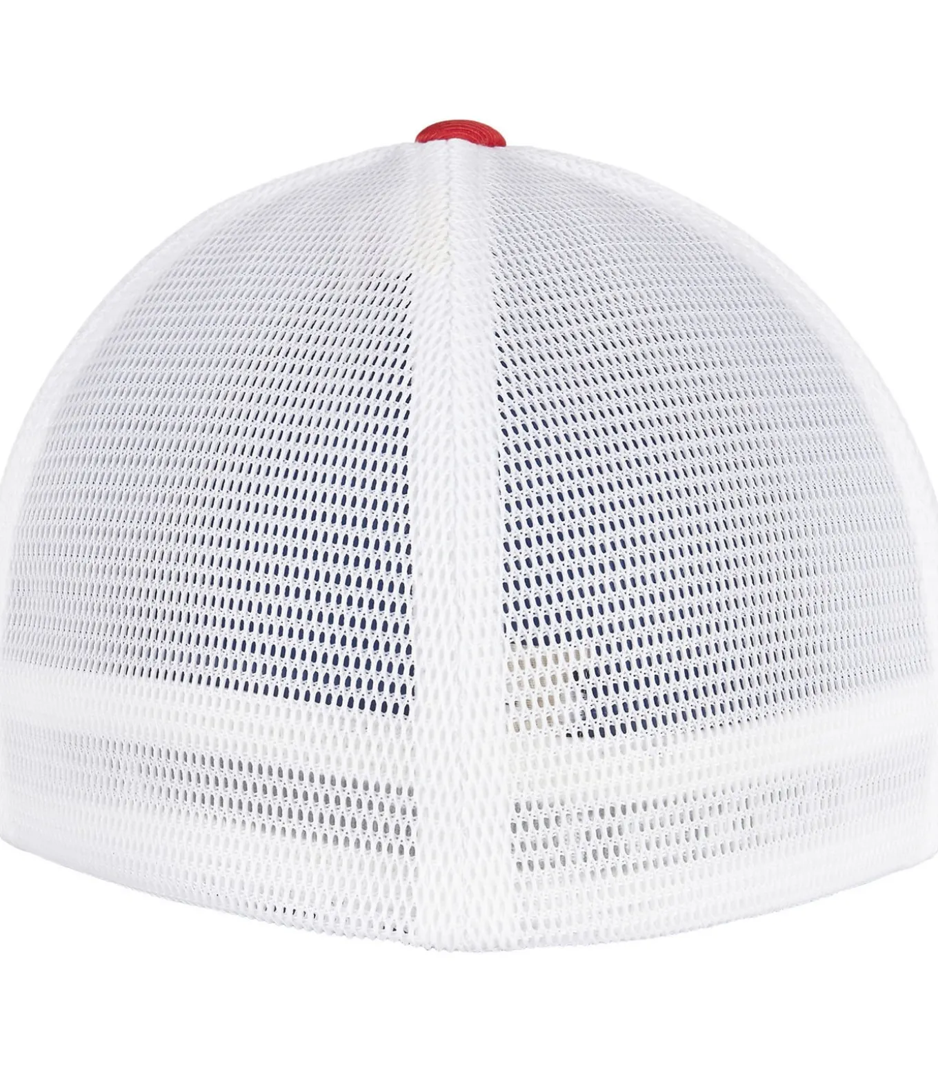 Dit is een Flexfit–kap in marineblauw met 96% polyester en 4% elastane (Omnimesh–stof). Het ontwerp is tweekleurig, bestaande uit zes paneelpartijen met acht rijen stiksel. De kap heeft onder meer een authentieke sticker, knoop bovenaan, een kindveilige beveiligde knoop, decoratieve stikseldetails en is voorzien van voorgebogen piek en verstevigd voor. De kap is WRAP–gecertificeerd, wat zegt dat het product duurzaam is geproduceerd.