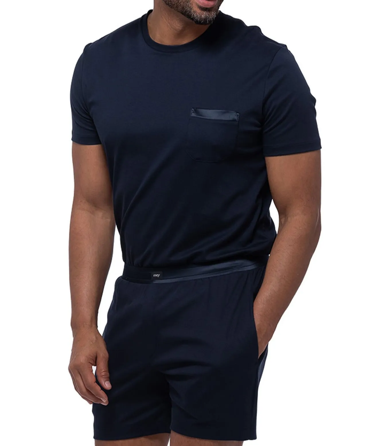 Aangenaam comfort ontmoet casual stijl: de herenpyjama’s uit de Aarhus–serie combineren een T–shirt van zacht katoen met een klassieke ronde hals en borstzak met een short van superfijne interlockstof. De comfortabele geweven tailleband, steekzakken en het luchtige ontwerp maken hem ideaal voor warme nachten en ontspannende uren thuis.