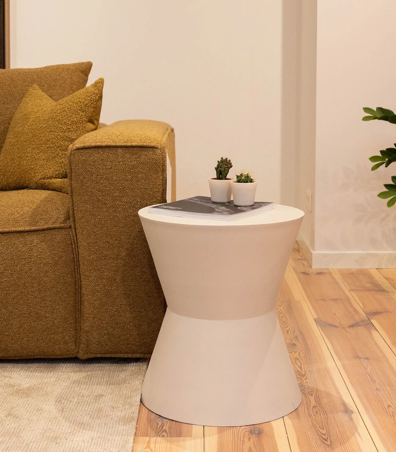 De bijzettafel Amante is een strak en simplistisch designstuk, volledig uitgevoerd in metaal. Met een diameter van 40 cm en een hoogte van 46 cm is deze compacte tafel ideaal voor het plaatsen van kleine decoratieve items. Dankzij het minimalistische ontwerp past hij moeiteloos in diverse interieurstijlen. Verkrijgbaar in de kleuren zwart, ivoor, olijf en roestbruin.