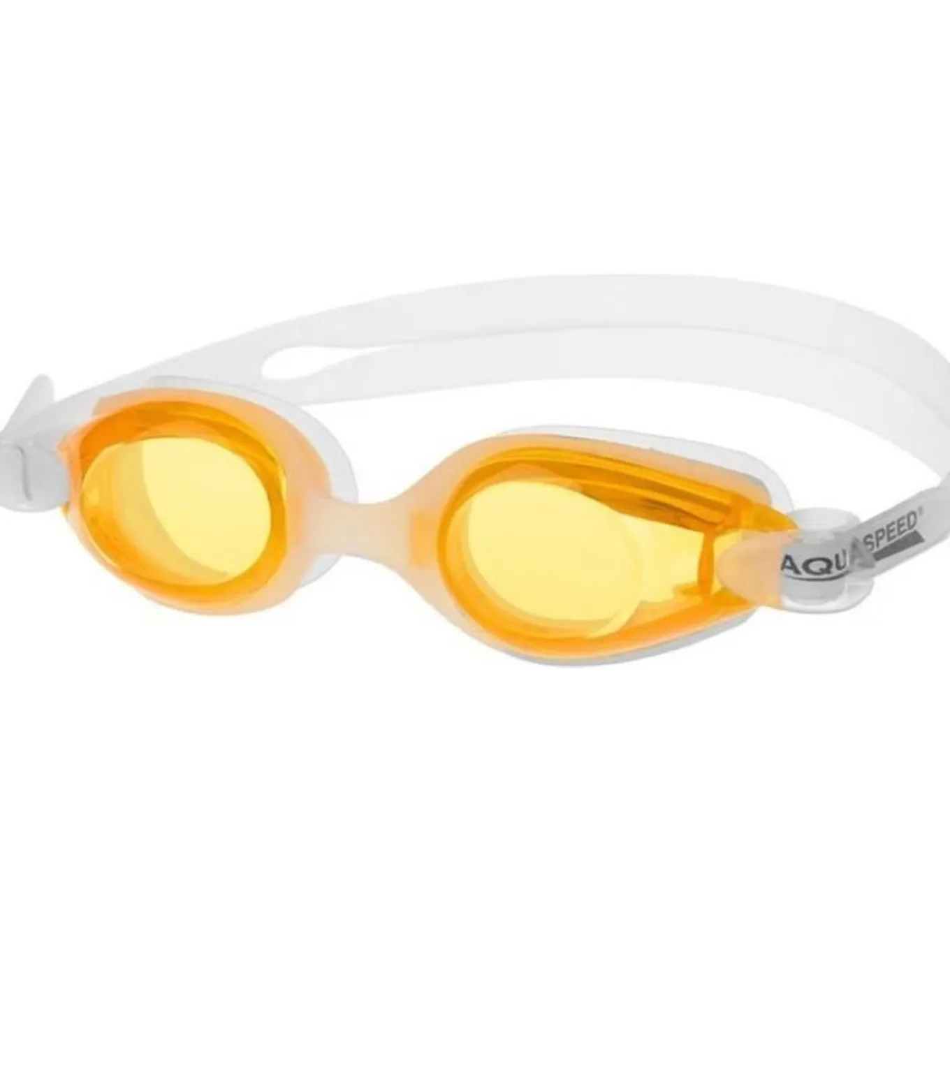 Aqua Speed zwembril van de merk ARIADNA in oranje met polycarbonaat materiaal en een logo ontwerp. Het bezit dubbele flexibele siliconenbanden en is voorzien van een verstelbaar riempje voor een comfortabele en gesloten pas. De neusbrug is flexibel, anti–condensatievermogen heeft en is uitgerust met Soft–Seal pakking voor waterdichtheid. Het biedt UV–bescherming en is geschikt voor gebruik in zowel interieur als exterieur omstandigheden.