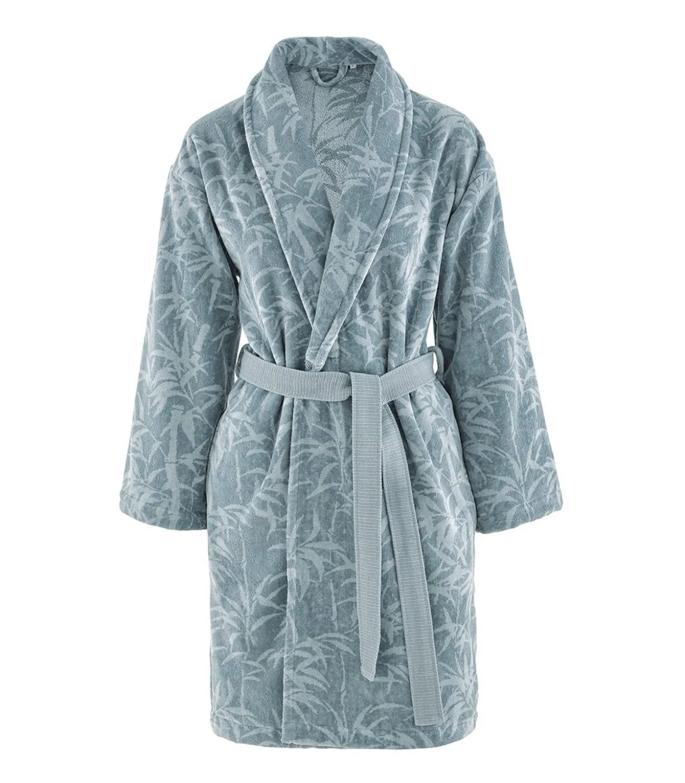 Jacquard bamboebladeren in fjordblauwe tinten