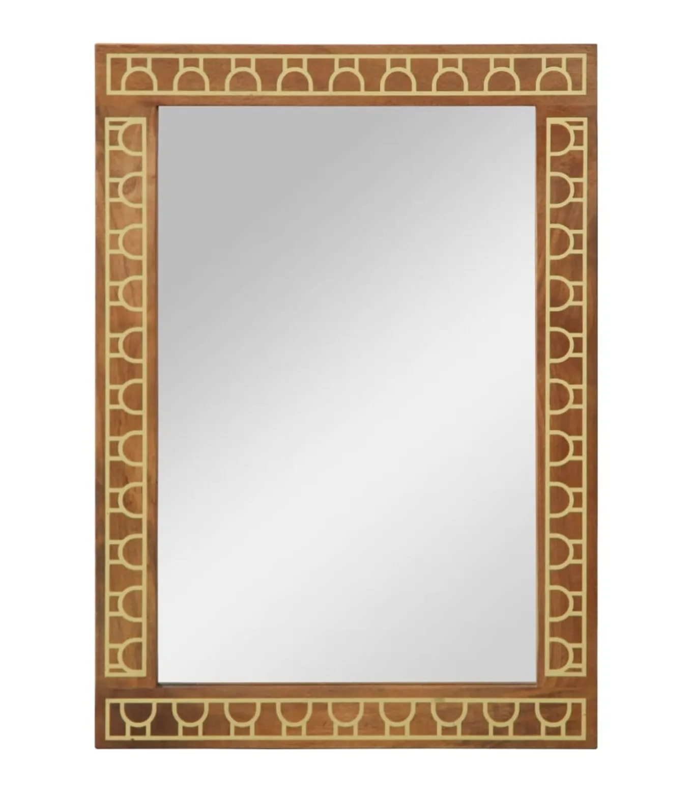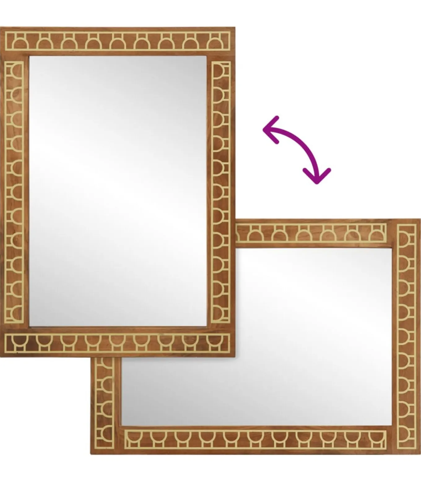 Massief mangohout: massief mangohout is een sterk, tropisch hardhout waar stevige meubelen van gemaakt worden. De prachtige houtnerven maken elk meubelstuk net even anders dan de rest. De spiegel is gemaakt van massief mangohout en is gemakkelijk schoon te maken.