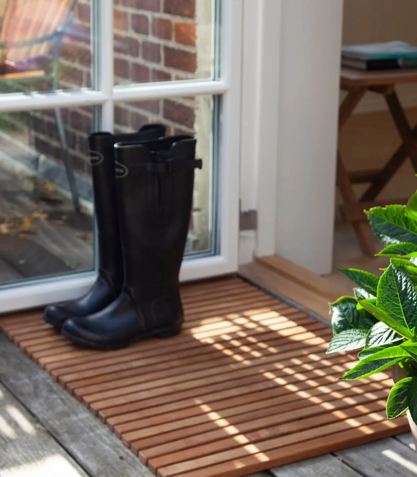 Exclusieve badmat met teakhouten latten van de Deense fabrikant Cinas. Perfect voor in de badkamer of als decoratief element in de entree.De badmat maakt indruk met een geweldige houtnerf die een aangename warmte oproept in de badkamer of hal. Of het nu voor de wastafel, het bad of de douche is, de badmat biedt je altijd een veilige ondergrond en een aangenaam gevoel op de huid dankzij de comfortabele teakhouten latten. Je kunt deze elegante teakhouten mat ook gebruiken als schoenenrek in de gang.De badmat is gemaakt van stevige teakhouten latten die gemonteerd zijn op zwarte rubberen draden. Hierdoor is de mat zowel flexibel als slijtvast.Teak is een populaire houtsoort voor meubels en woninginrichting omdat het rijk is aan natuurlijke oliën. Daarom is het hout bijzonder slijtvast en ideaal voor dagelijks gebruik, of het nu geolied is of een natuurlijke patina heeft.Hoewel teak hard en robuust is, is het raadzaam om de badmat te behandelen met een kleurloze olie. De olie behoudt de warme kleur van het teakhout en verzadigt de toplaag voor meer weerstand tegen water en vlekken. Lees voor gebruik aandachtig de instructies op de verpakking.Het kwaliteitsmeubel– en interieurassortiment van Cinas is de perfecte keuze voor iedereen die op zoek is naar een duurzaam ontwerp in tijdloze Scandinavische stijl.