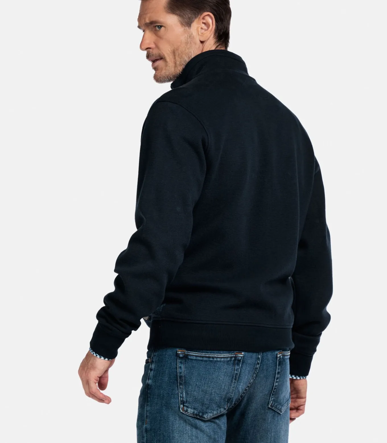Dit two–tone sweatvest is uitgevoerd in een regular fit en gemaakt van een stevige katoenmix. Het jacquard geweven voorpand geeft het model een bijzondere textuur, terwijl de mouwen en achterkant glad zijn voor een mooi contrast. Afgewerkt met een ritssluiting, zakken met rits en ribgebreide boorden. De combinatie van materialen en structuur geeft dit vest een sportieve, eigentijdse uitstraling.