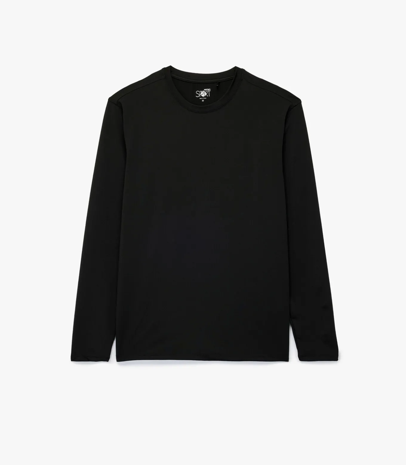 Basic sport–T–shirt met ronde hals, lange mouwen, relaxte pasvorm en naaddetails.