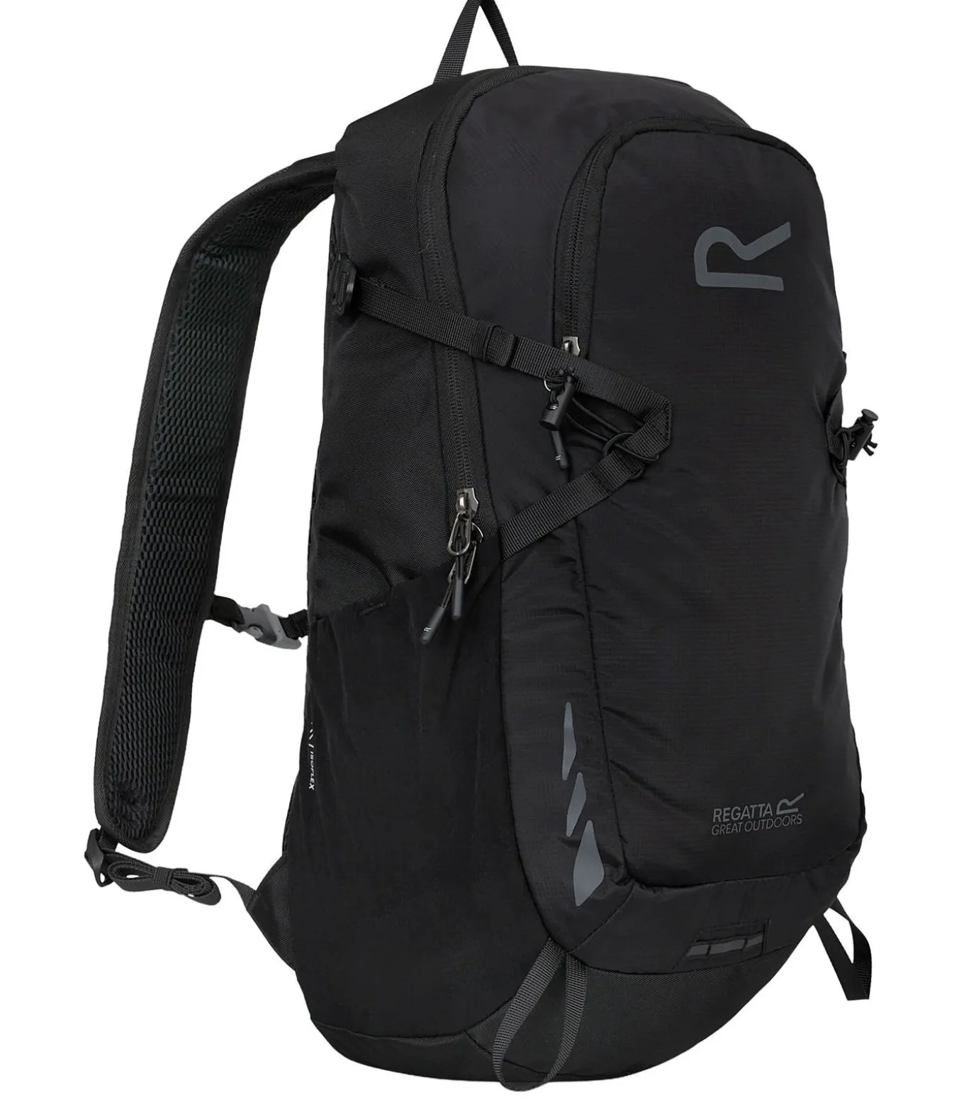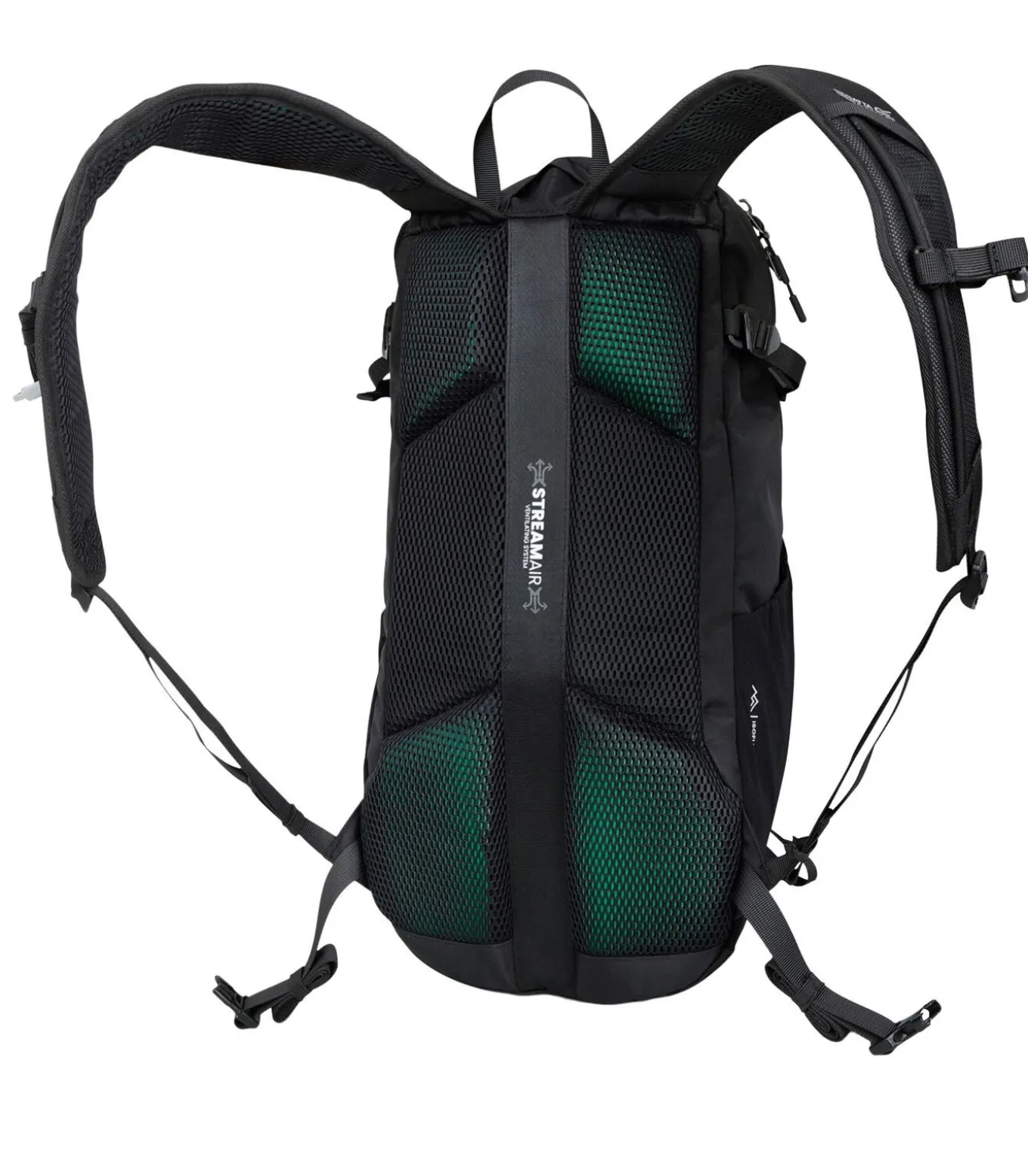 Regatta BLACKFELL IV – Zwarte Rucksack, met een capaciteit van 20L. Deze rugzak is gemaakt van geheel polyester met een stof van polyamide, Ripstop, Stretch en TECFOAM. Het denier is 600D. De rugzak beschikt over verschillende compartimenten zoals een hydratievat–opbergvat, uitbreidbare zak, zijzak, een hoofdkompartiment met rits en diverse zijdelingse compressiebanden. Ook heeft deze rugzak ergonomische schouderband, een gewatteerd rugpaneel, stoklussen, streamair ventilatiesysteem, slanghouder en dubbele rits voor extra bevestiging. De technologie van de stof is duurzaam en waterafstotend met Isoflex, Isovent, lichtgewicht, PFC–vrij, sneldrogend en weerbestendig. Bovendien wordt dit product gemaakt van hergebruikt materiaal.
