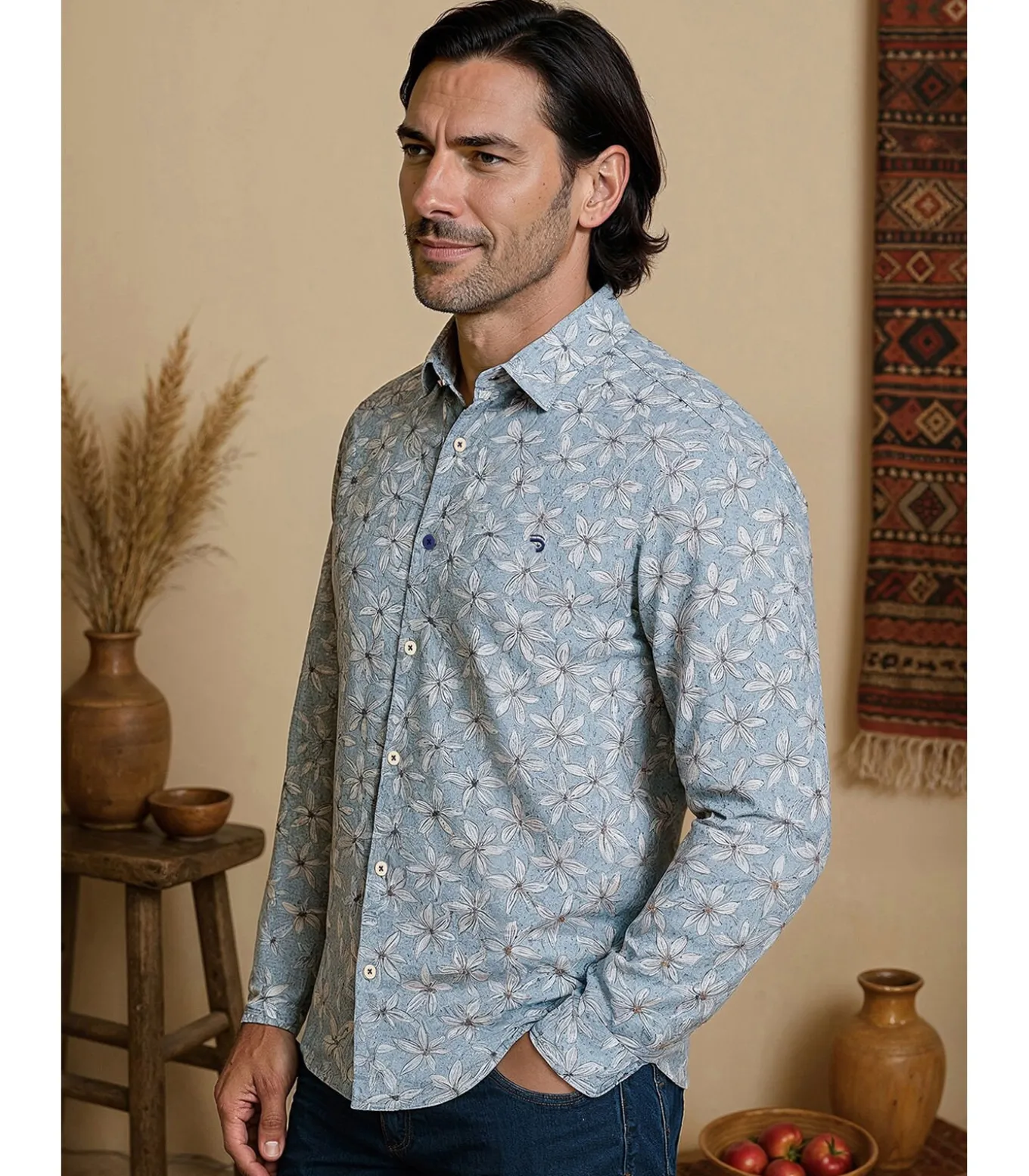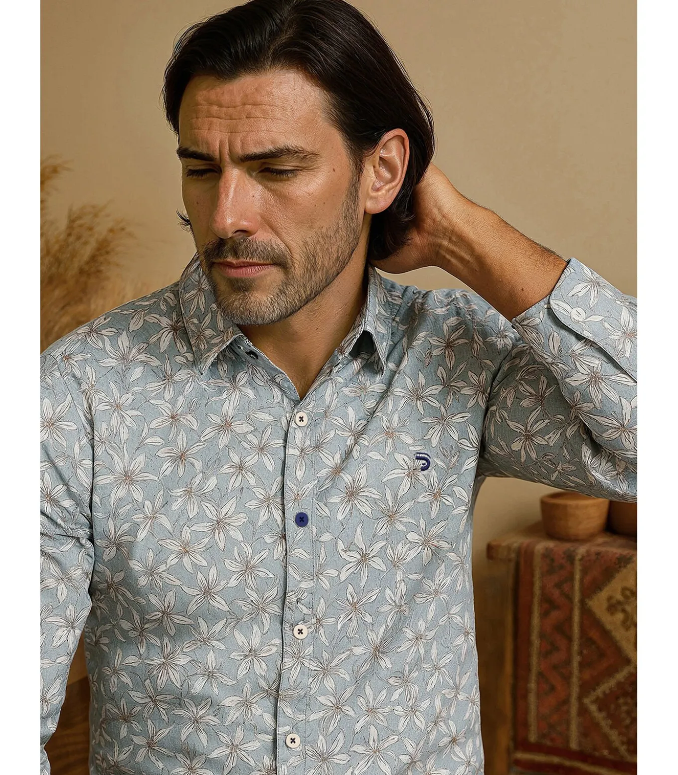 Be the first to review “Blauw herenoverhemd met witte bloemen” Reactie annuleren