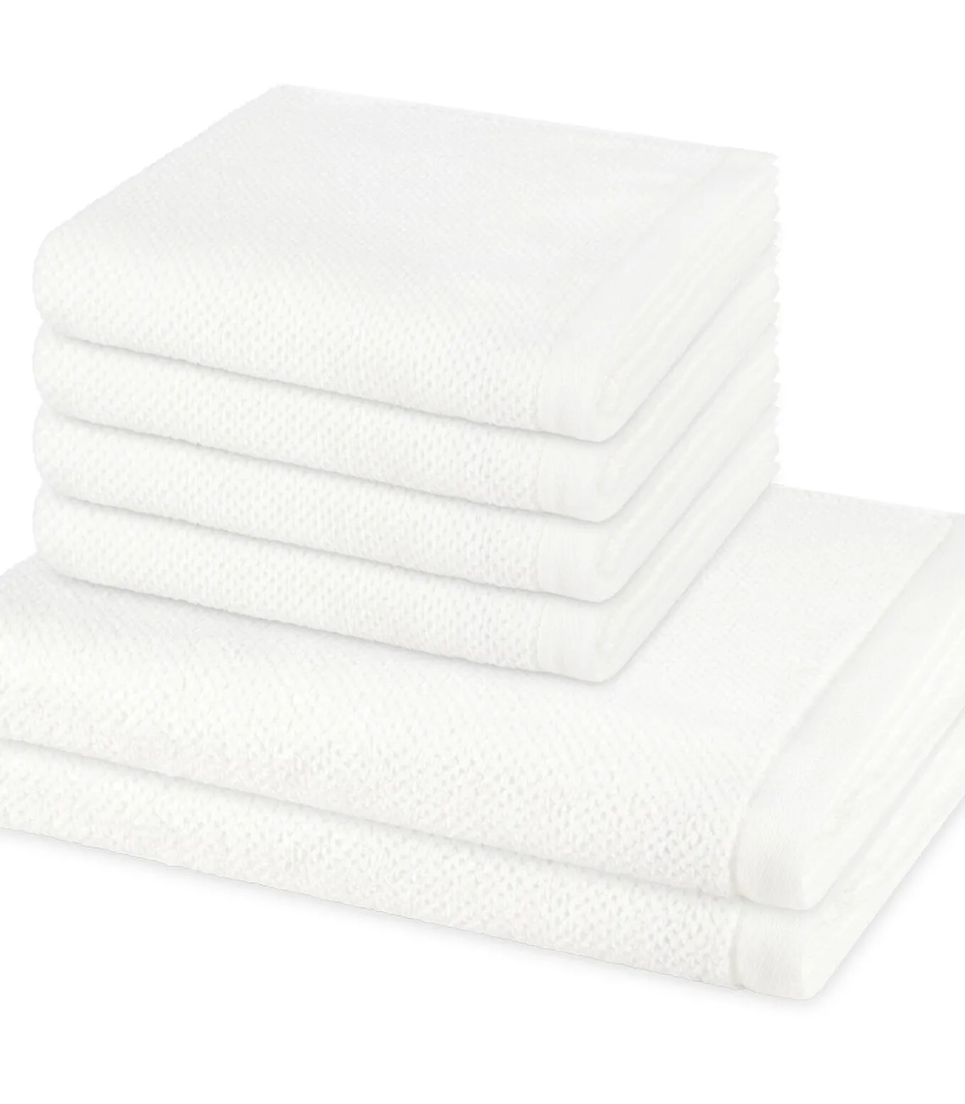 De Bliss collectie maakt indruk met zijn opvallende parelstructuur, moderne kleuren en brede zoom. De collectie is gemaakt van hoogwaardig katoen en biedt extra zachtheid en een licht massage–effect. De handdoeken zijn slijtvast, onderhoudsvriendelijk en voorzien van een praktische koordhanger. Ze zijn ideaal voor dagelijks gebruik en kunnen perfect met elkaar worden gecombineerd. Set bestaat uit: 4 X handdoek (50 X 100cm), 2 X douchehanddoek (67 X 140cm)