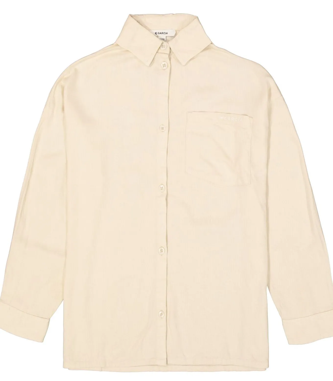 Blouse met borstzakje van katoenen chambray. Met dit item creëer je een toffe look. Deze blouse heeft lange mouwen, een kraagje, een knoopsluiting en een relaxed fit. Dit item is gemaakt van 70% viscose en 30% linnen.Dit GARCIA kledingstuk is gemaakt met LENZING™ ECOVERO™–vezels.