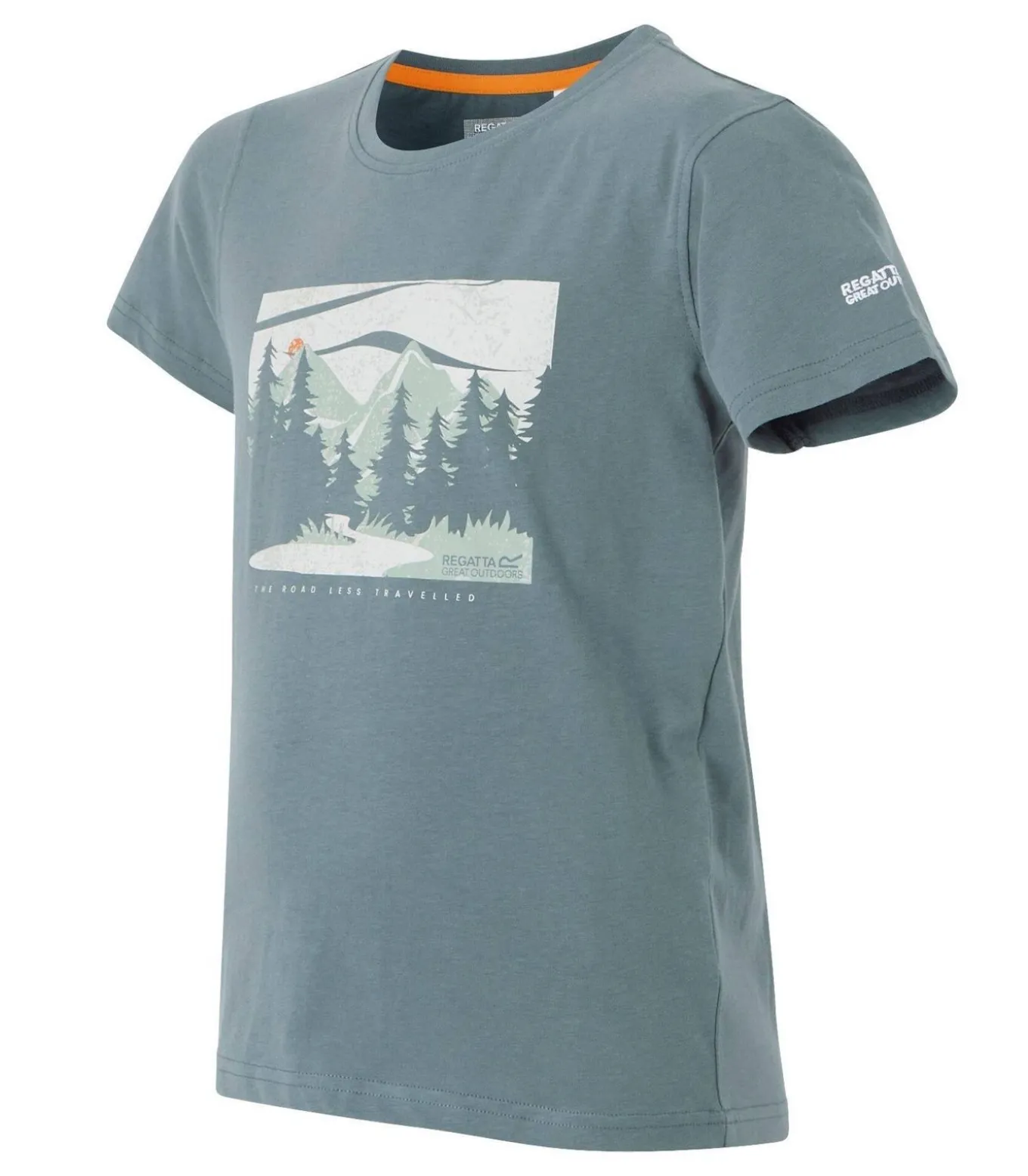 Regatta’s BOSLEY VIII T–shirt, met een prachtig marineblauw uiterlijk, is gemaakt van 100% katoen en heeft een single jersey stof. Het ontwerp bevat graphische prints, landschappen, logos, bergen, dennenbomen, zon en tekst. De hals is een crew neck, de mouw is kort en de stoftechnologie ervan is ademend en zacht. Deze T–shirt heeft UV–bescherming met een zonne–rating van UPF 30+. Het pasbeurt voor 3–4 jaar: 22,5 in., voor 5–6 jaar: 24 in., voor 11–12 jaar: 31 in., voor 7–8 jaar: 26 in., en voor 9–10 jaar: 28,5 in.