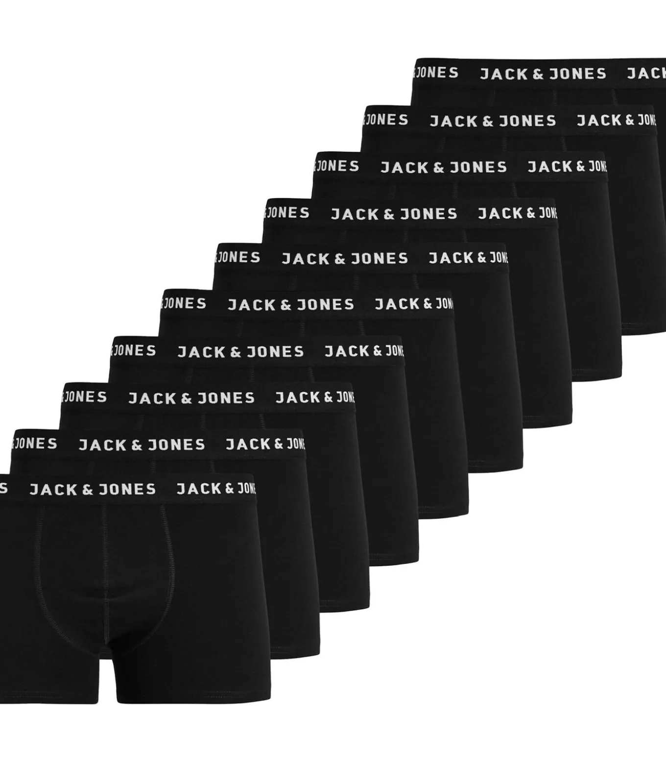 Effen boxershorts met logotailleband voor jongens van het merk JACK&JONES. Gemaakt van zacht stretchkatoen. In een aantrekkelijke verpakking van 10 stuks.