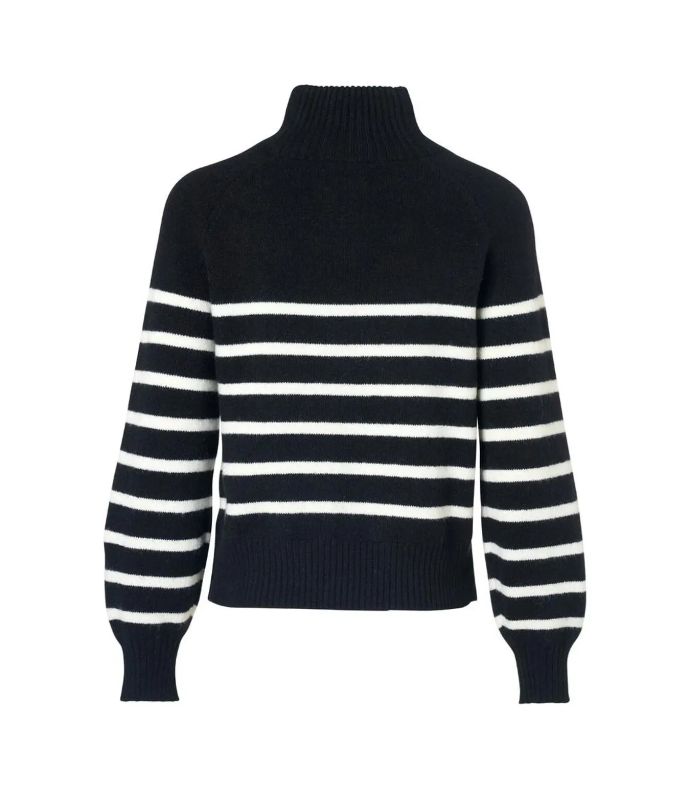 De Danville streep trui in zwart–wit combineert tijdloze stijl met comfortabel draaggemak. De opvallende horizontale strepen geven de trui een moderne en speelse uitstraling, terwijl de hoge col extra warmte biedt tijdens koelere dagen. Ribboorden bij hals, mouwen en onderkant zorgen ervoor dat de trui zijn vorm behoudt en netjes blijft zitten, ook bij intensief gebruik. De lange raglanmouwen bieden veel bewegingsvrijheid en maken de trui ideaal om los te dragen of in laagjes te combineren. Het rechte model valt mooi over de heupen en geeft een verzorgde, ontspannen look. Gemaakt van een mix van polyester, nylon, acryl, wol en elastaan voelt de trui zacht aan en biedt lichte stretch, waardoor hij comfortabel blijft voor dagelijks gebruik. De zwart–witte strepen geven een opvallend maar veelzijdig accent dat eenvoudig met verschillende kleuren te combineren is.