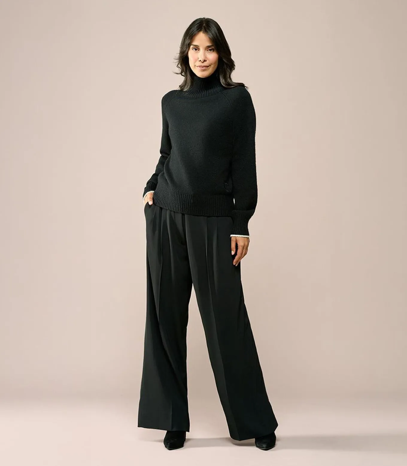 De Danville trui in zwart is een elegante en veelzijdige gebreide trui die niet mag ontbreken in de wintergarderobe. Deze zwarte trui heeft een comfortabele col die de hals warm houdt en subtiele ribboorden bij de hals, mouwen en zoom voor een verzorgde afwerking. Het rechtvallende model biedt een tijdloze uitstraling en voldoende bewegingsvrijheid, terwijl de lange raglanmouwen zorgen voor extra comfort en een ontspannen fit.De stofmix van 30% polyester, 27% nylon, 25% acryl, 15% wol en 3% elastaan geeft de trui een zachte, licht elastische structuur die warmte biedt en tegelijkertijd de vorm behoudt. Dankzij de comfort–stretch kwaliteit draagt de Danville trui prettig op de huid en blijft hij de hele dag comfortabel, ongeacht de activiteit. De diepe zwarte kleur vormt een klassieke, veelzijdige basis die gemakkelijk te combineren is met andere kledingstukken. Zo is deze trui ideaal voor zowel casual als nettere looks, waardoor het een tijdloze investering is voor iedere wintergarderobe.