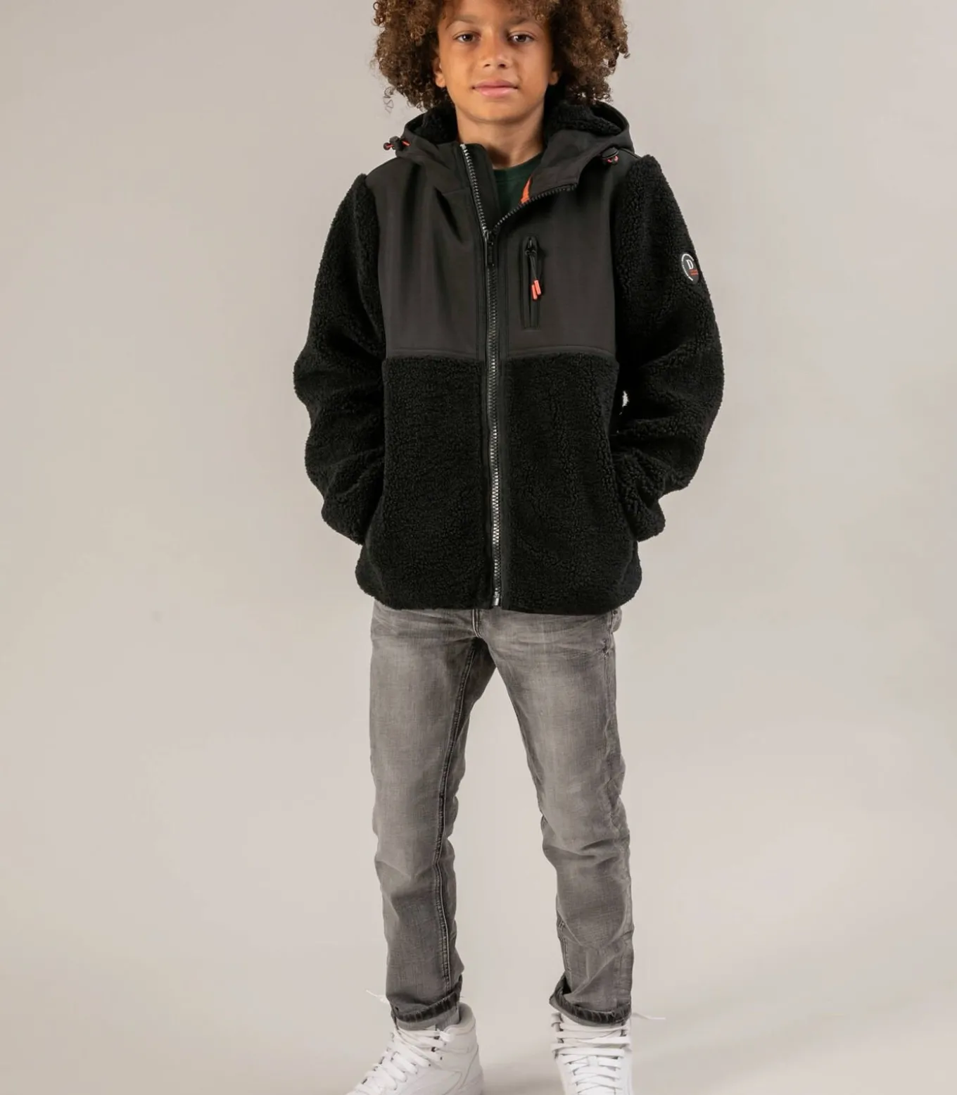 De CENTERO jas voor jongens is de perfecte keuze om comfort en casual stijl te combineren op koele dagen. Dit bi–materiaal jack is ontworpen voor actieve jonge mensen en biedt een elegante combinatie van stijl en functionaliteit.Met zijn lange mouwen en zijn oversized snit is dit jack geïnspireerd op de stijl van fleece kleding, terwijl het sherpa–panelen met shearling–effect heeft voor een vleugje warmte en textuur. De gladde stof op de overige delen zorgt voor een interessant visueel contrast en een grote duurzaamheid.Praktisch en trendy, de jas heeft een gevoerde capuchon voor extra bescherming tegen de kou. De fluorescerende details op het trekkoord in de capuchon en de ritssluiting op de borst geven het geheel een dynamische en moderne toets.De fleece binnenkant garandeert gezellig comfort, ideaal voor schooldagen of wandelingen met vrienden. Combineer hem met een jeans of cargobroek voor een casual, veelzijdige look die voldoet aan de behoeften van alle dagelijkse avonturen.