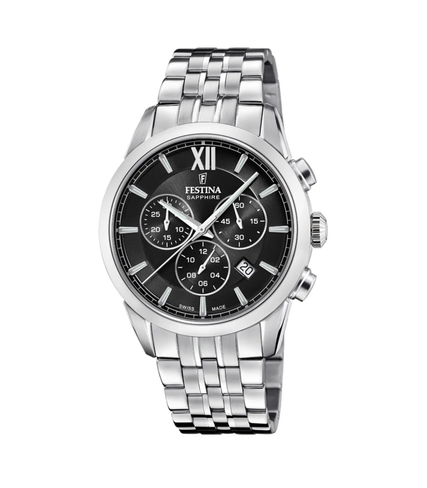 Festina Swiss Made heren horloge met een 316l roestvrij staal kast en een saffier glas met een 316l roestvrij staal band/armband. Dimensions: DIA.41/STRAP:0 mm, Material: Stainless steel