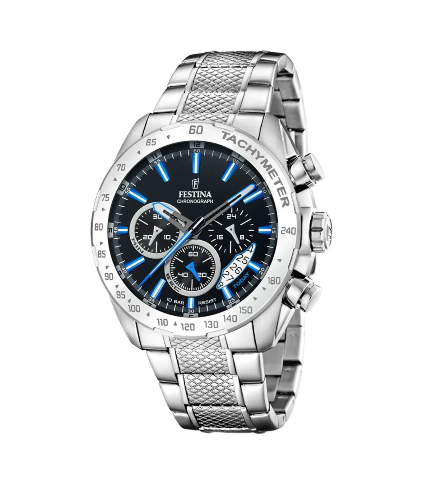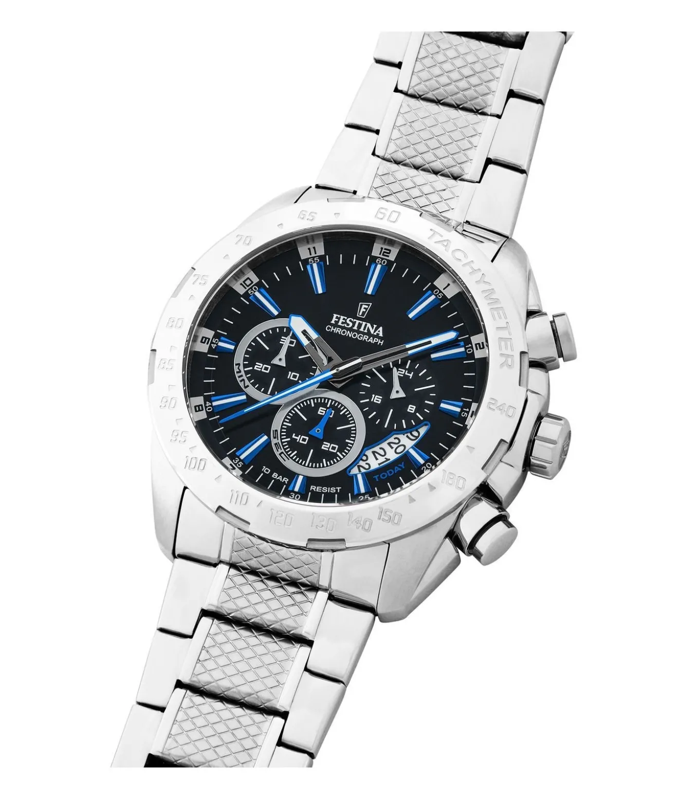 Festina heren horloge met een 316l roestvrij staal kast en een mineraal glas met een staal band/armband. Festina horloges zijn de perfecte mix van elegantie en functionaliteit.Festina biedt een herkenbaar design, constante technologische evoluties en en een perfecte prijs/kwaliteit garantie. Dimensions: DIA.44.5/STRAP:0 mm, Material: Stainless Steel