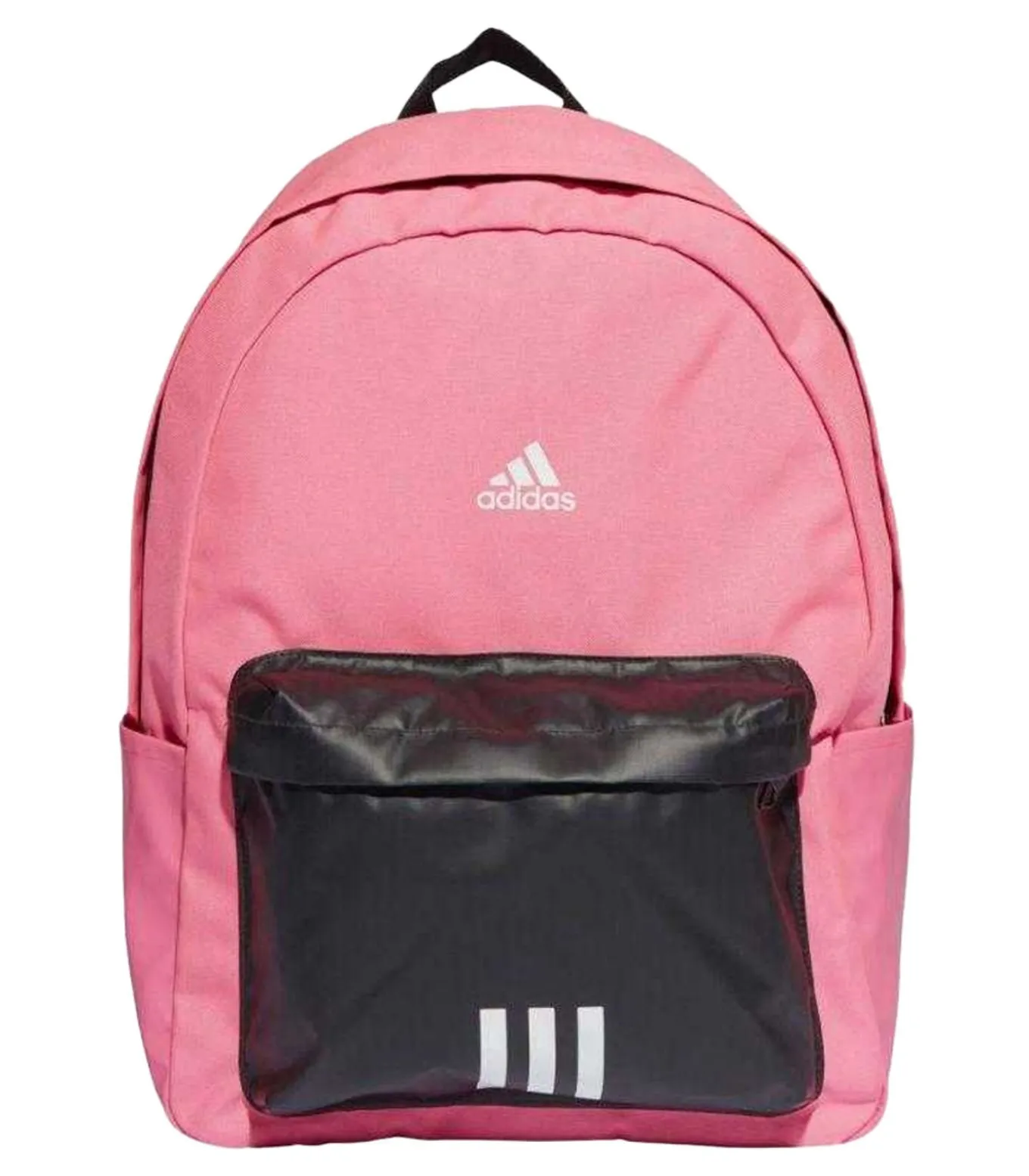 Adidas–brand rugzak met classic sportlabel – roze kleur, gefillt met 100% polyethyleen buitenmaterialen en 100% gerecycled polyester voor lining en voering. Het materiaal is gemaakt van een gluip weefsel, de hoogte bedraagt 44cm, breedte 36cm, inhoud 27,5L en diepte 15cm. De rugzak heeft een voorzak, een ripsluiting, twee steekzakken en een zijzak. Het hoofdcompartiment is verstelbaar via de schoudergordel en draaggreep. Het ontwerp van deze rugzak bestaat uit color block, logo en gestreept en wordt vastgezet met ritssluitingen.