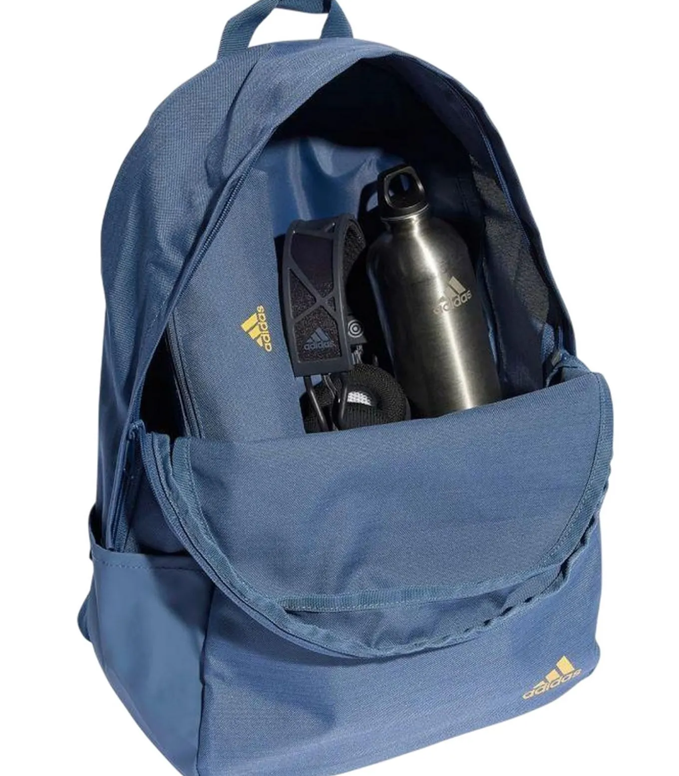 Adidas Classic Rugzak Blauw is een 100% gerecycleerd polyester rugzak met een canvas en weefstof structuur. De hoogte bedraagt 44 centimeter, de breedte 36 centimeter en het inhoudsvolume 27,7 liter. De diepte is 15 centimeter. Het zakje telt een voorzak, rits, twee steekzakken en een zijzak. Verder bevat het een etui. Het hoofdcompartiment bestaat uit verschillende compartimenten. Het handvat heeft een onderkant die is bedekt met een zachte stof en is geschikt om een A4–map in te vervoeren. Het handvat is gefoerd en de schouderriemen zijn verstelbaar. De rugzak is gemaakt volgens duurzaamere technologieën, heeft een horizontaal ontwerp met een Adidas–logo en gestreepte structuur. Het zakje wordt bevestigd via ritssluitingen.