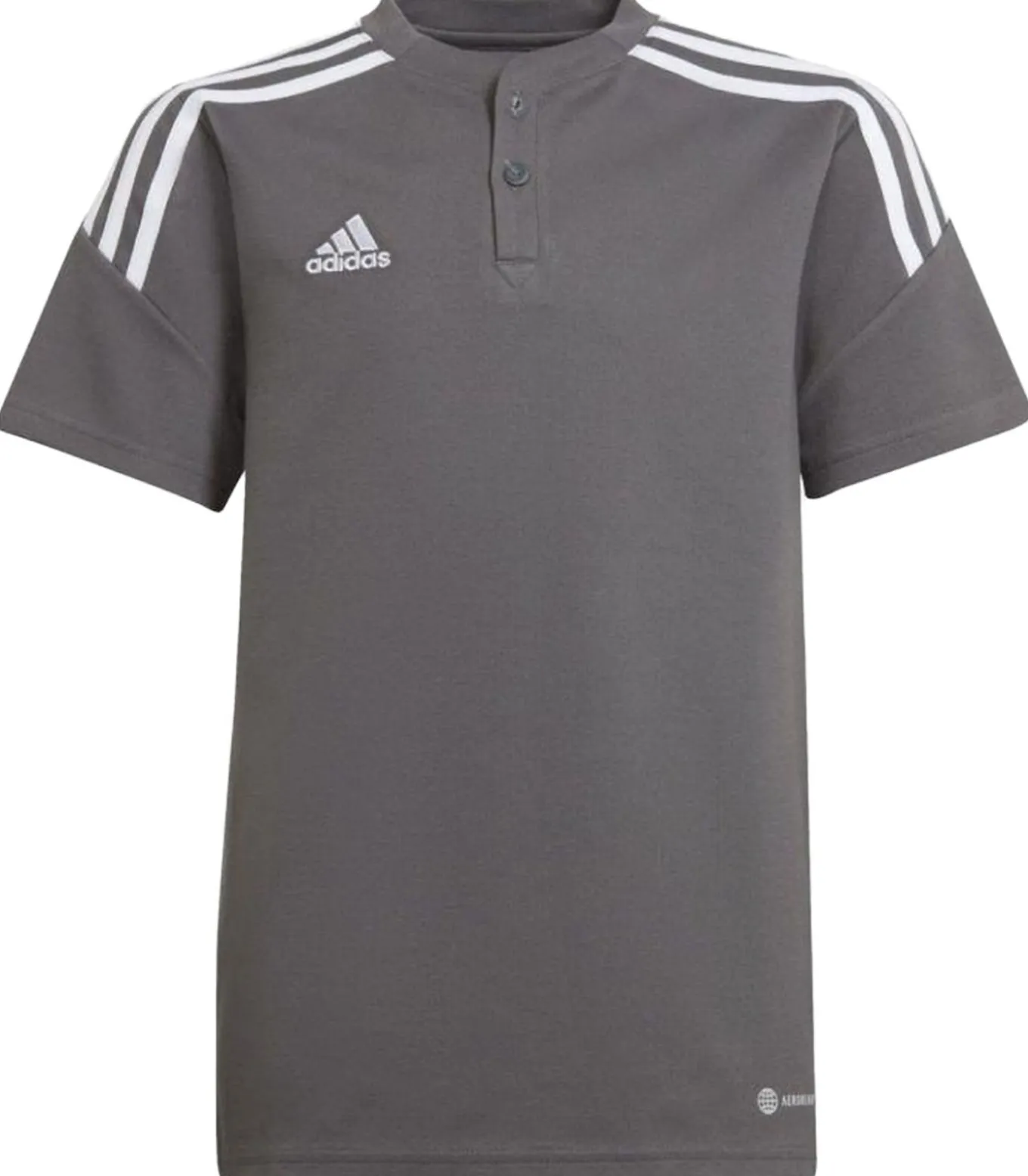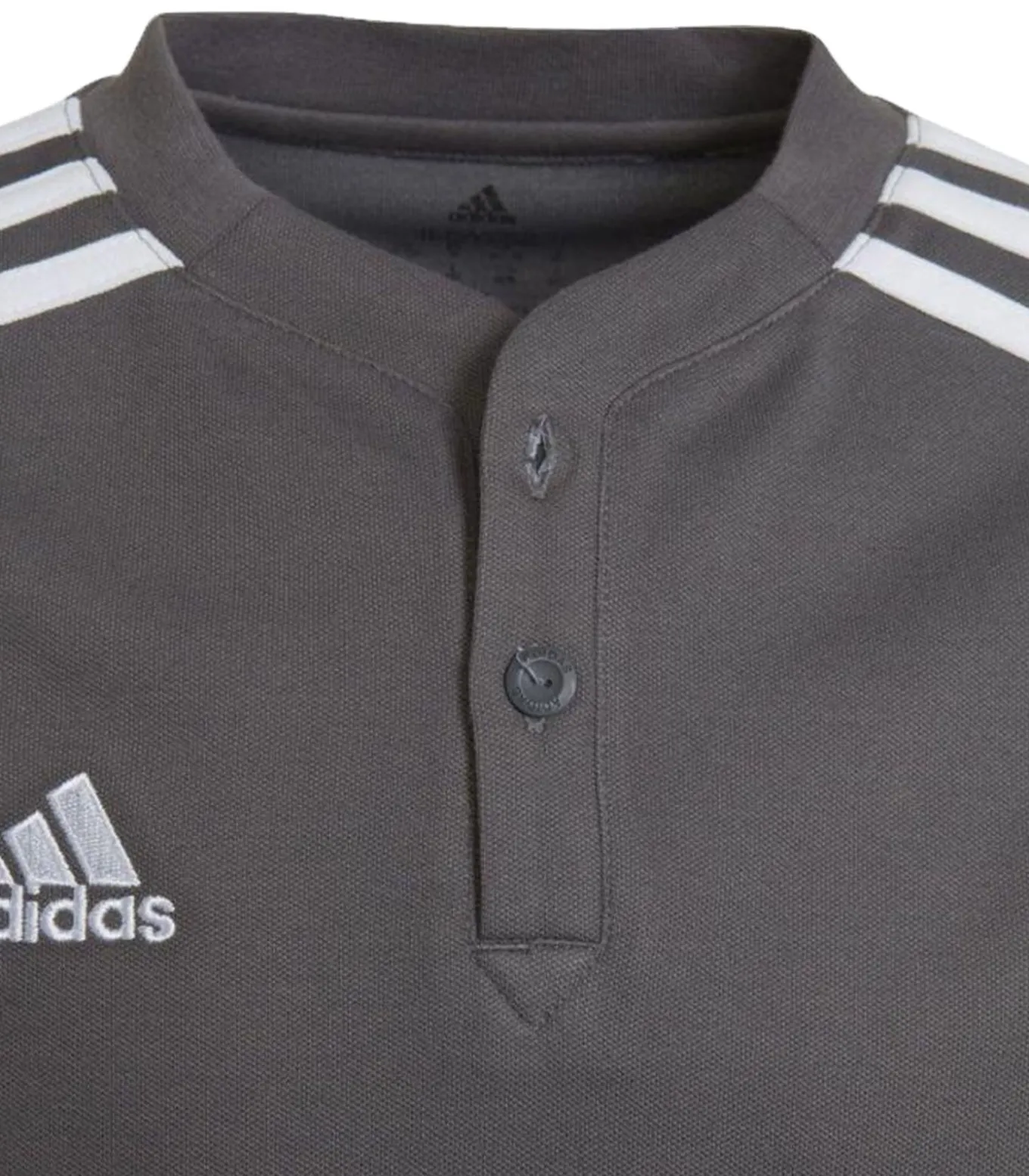 Adidas Condivo 22– Poloshirt – Grijs is een shirt gemaakt van 58% katoen en 42% polyester. Het ontwerp van dit shirt bevat een contraststreep, logo en tekst. Het heeft een Henley halslijn met geribd patroon. De mouwen zijn van het Raglan type met korte mouwen. Er zijn zijwaartse ventilatieopeningen aan het hemd. Deze shirt is gemaakt met de Aeroready, lichtgewicht en sneldrogende stoftechnologie. Het heeft een knoopsluiting met 2 knopen. Het passformaat is klassiek. Het paslijn meet 34 in.