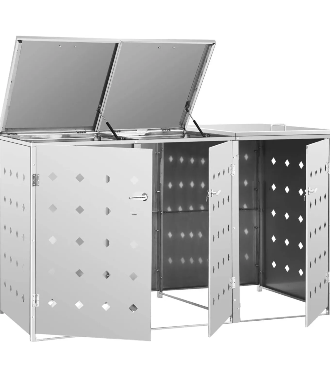 De roestvrijstalen afvalbakberging is buitengewoon weerbestendig en duurzaam. De handige ventilatieopeningen zorgen voor luchtcirculatie en voorkomen geurtjes in de berging. Het vergrendelingssysteem zorgt voor een veilige opslag van het afval. Bovendien kan je met de handige deur de afvalbak gemakkelijk in– en uitnemen.