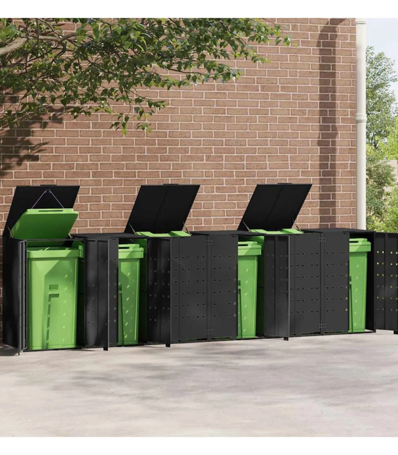 Deze containerberging verbergt discreet je vuilnisbakken in de tuin en transformeert je buitenruimte in een mooie en opgeruimde omgeving.