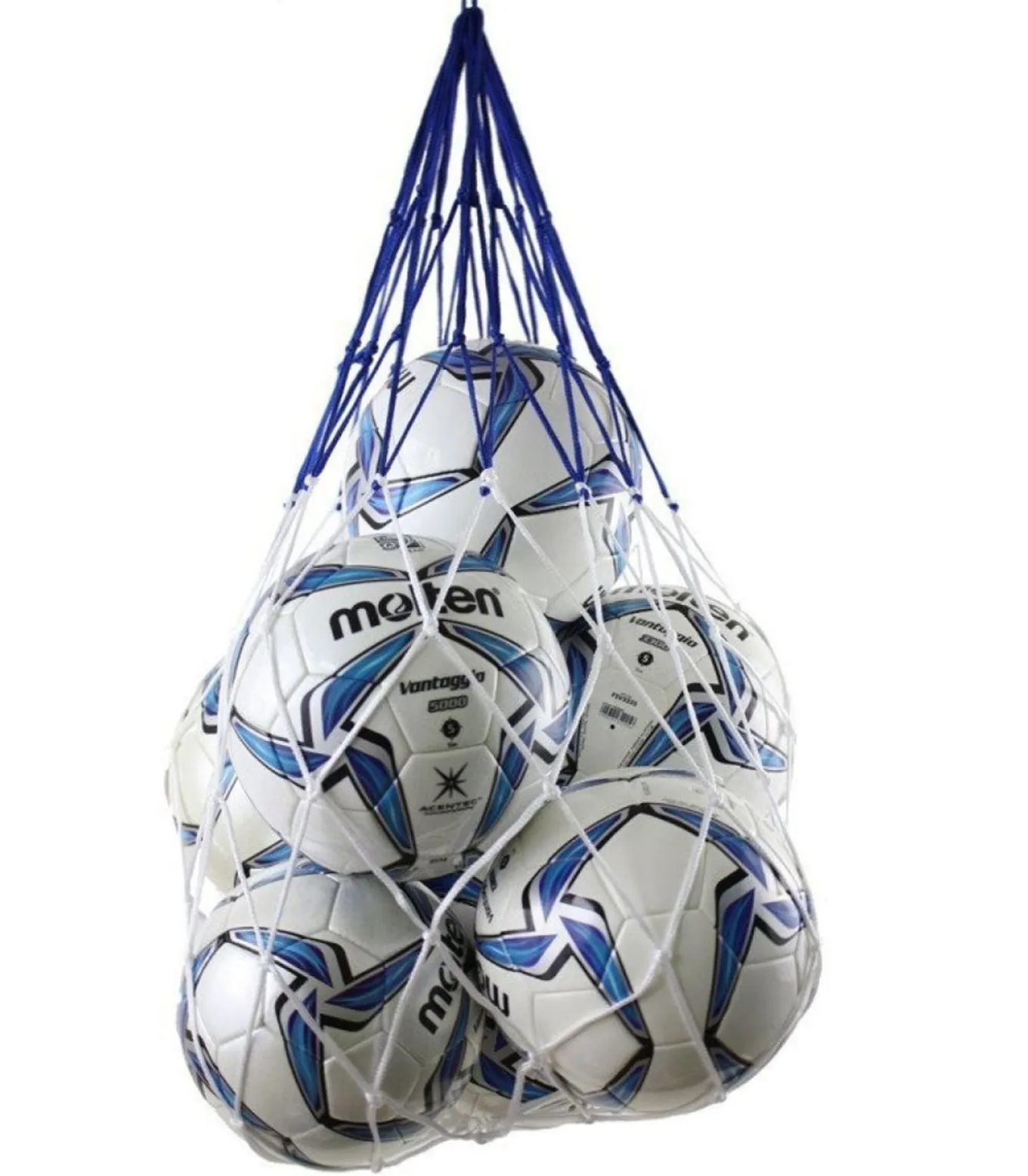 Bal Molten CONTRAST – Wit, gemaakt van polyester. Deze bal heeft verstelbare klemmen en is geschikt om 8 tot 10 ballen te verwerken. Het ontwerp is contrast rijk en geknoopt.