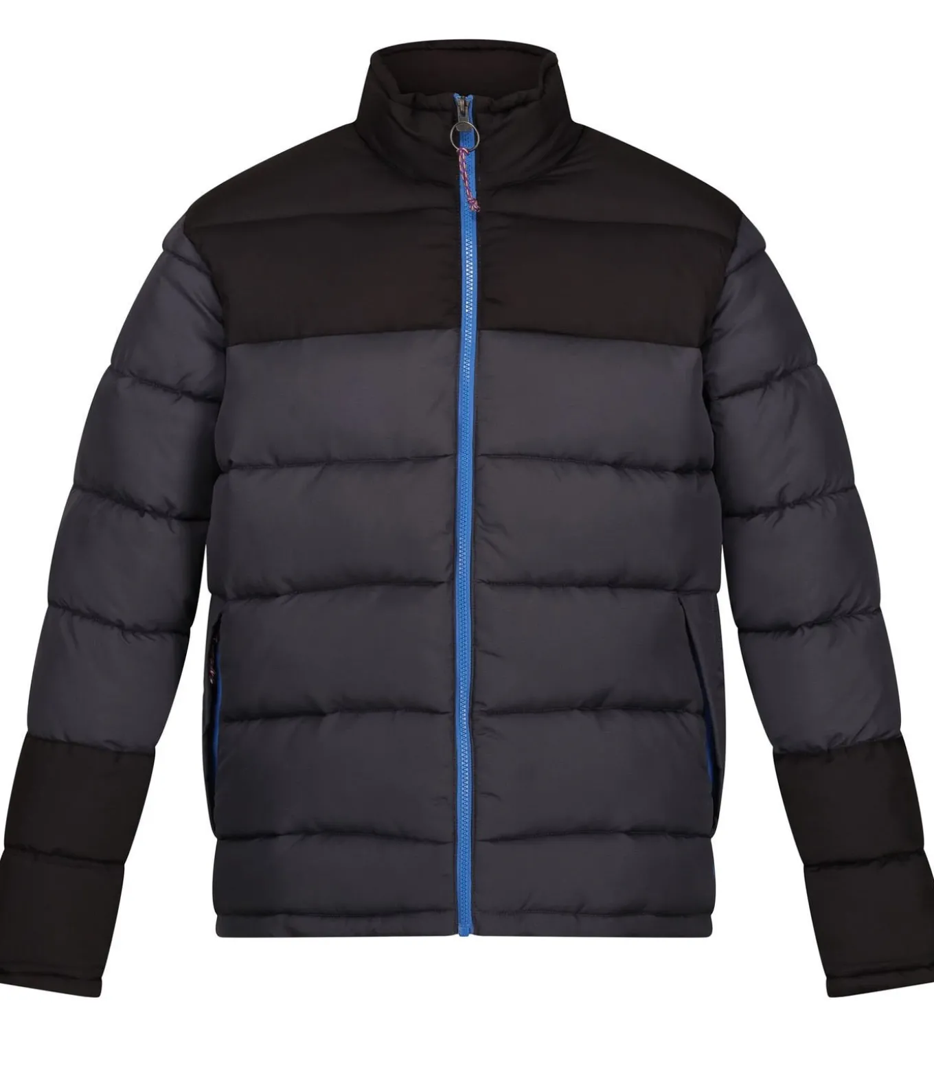 Dit geïsoleerde pufferjack van Regatta Mens is ontworpen voor koud weer. Het heeft een 100% polyester buitenkant die isolerend en waterafstotend is. De vulling is gemaakt van zwaar gerecycled materiaal voor optimale warmte. Het quiltpatroon heeft contrasterende details. Lange mouwen met stormmanchetten beschermen de armen. Een opstaande kraag omsluit de nek. Voor opslag zijn er twee zijzakken met rits. De rits over de hele lengte sluit de jas. Deze vintage–geïnspireerde stijl is zeer geschikt voor koele herfstdagen.