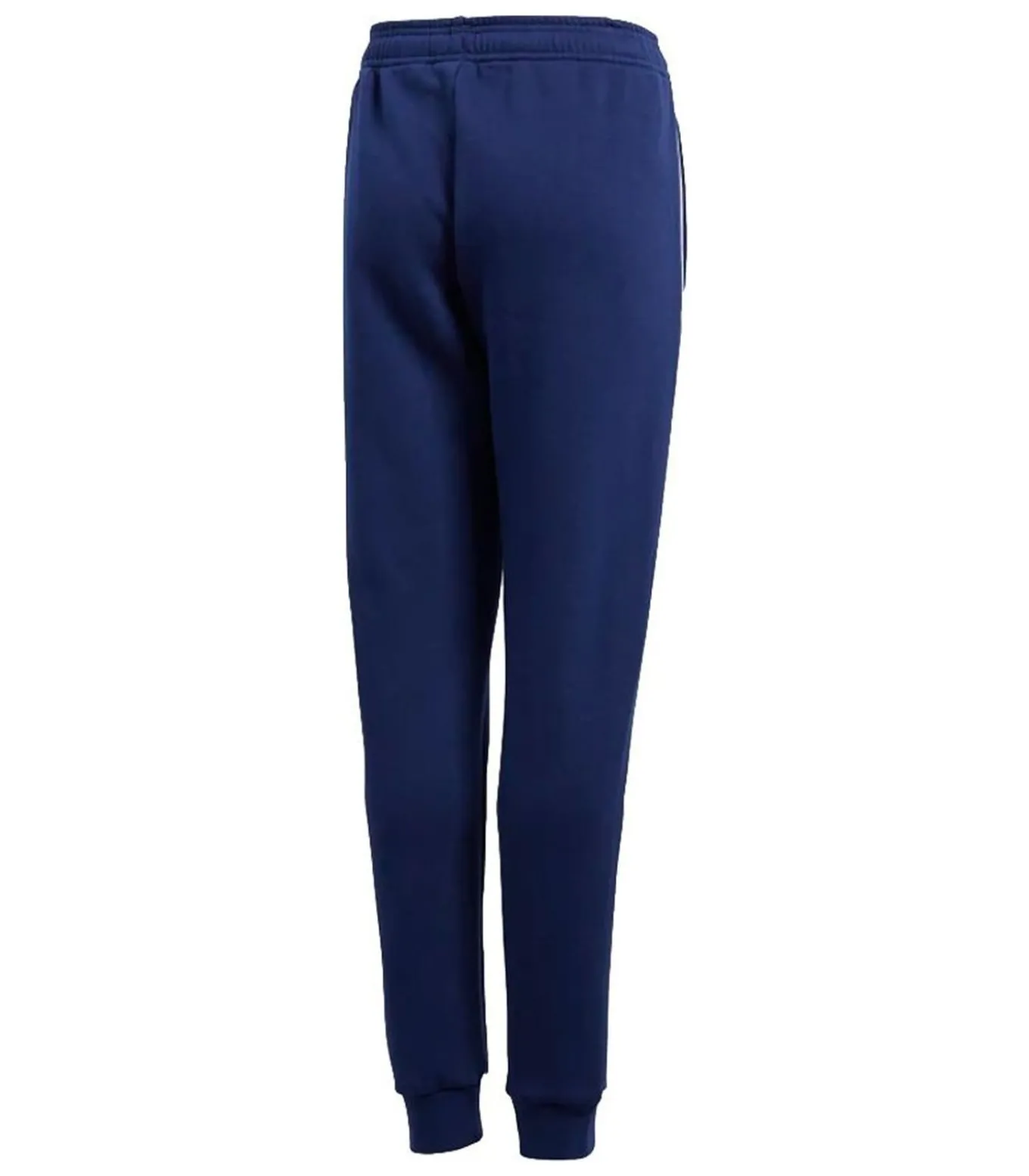Adidas–merk joggingbroek CORE 18 in marineblauw stof bestaat uit 70% katoen en 30% polyester. Het ontwerp van dit sportbroek is voorzien van een contraststrook en logo. De broek wordt vastgehouden via een Pull–On systeem. Het broek heeft een tap toe lopende pijp die onbeperkte bewegingsvrijheid biedt. De broek heeft twee zijzakken voor opslag van persoonlijke voorwerpen en de taille is elastisch met een binnenkoord. Het broek wordt aangeboden in een standaard grootte en de manchetten zijn elastiek.