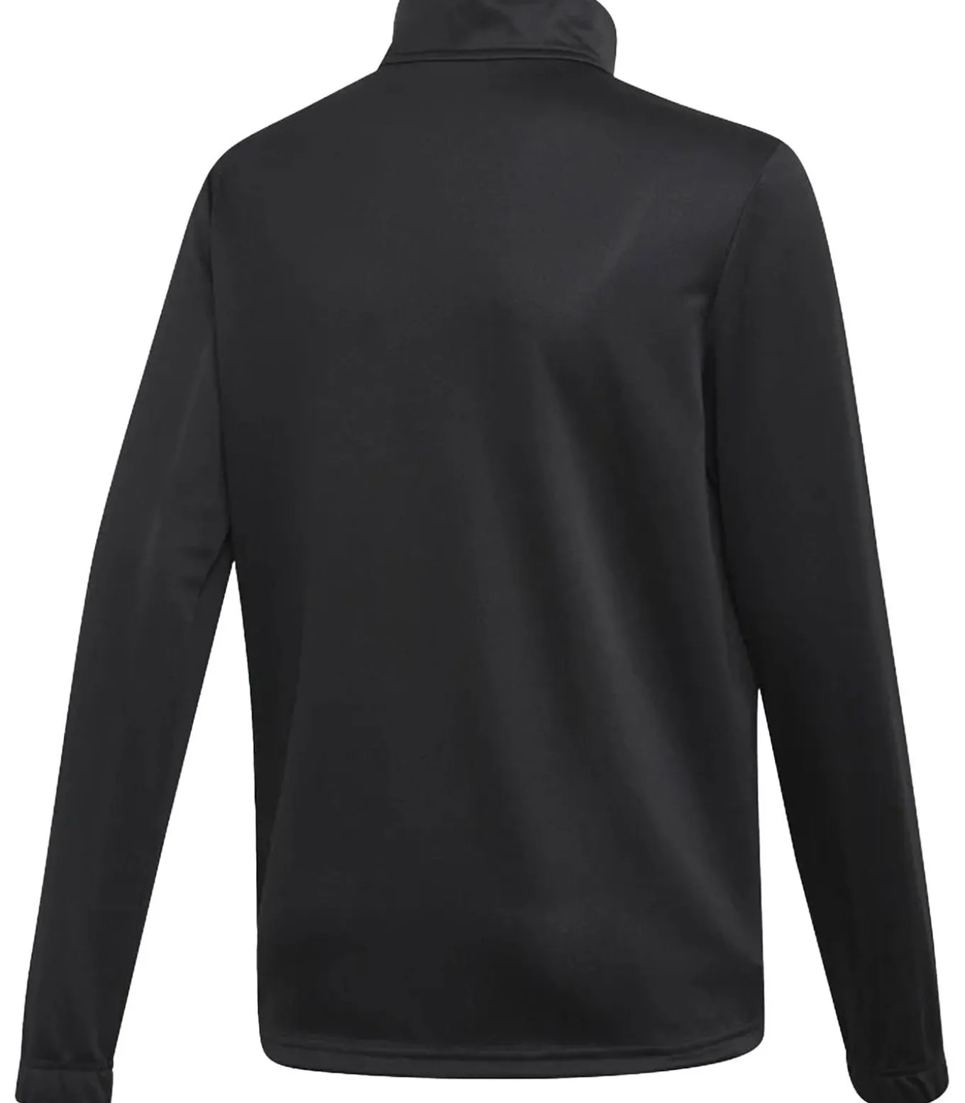 Adidas CORE 18 Zwarte West met polyester, vervaardigd van 100% polyester. Dit ontworpen door contrasterende draadjes en geborduurde logo. Deze west is voorzien van Aeroready, Ademend en lichtgewicht technologieën. De manchetten zijn elastiek. De halsband is hoog en de mouw heeft lange armten. Deze west is los en gesloten met een kwart rit. Het passende maat is als volgt: 5–6 jaar (24 inch), 7–8 jaar (25 inch) en 13–14 jaar (34 inch).