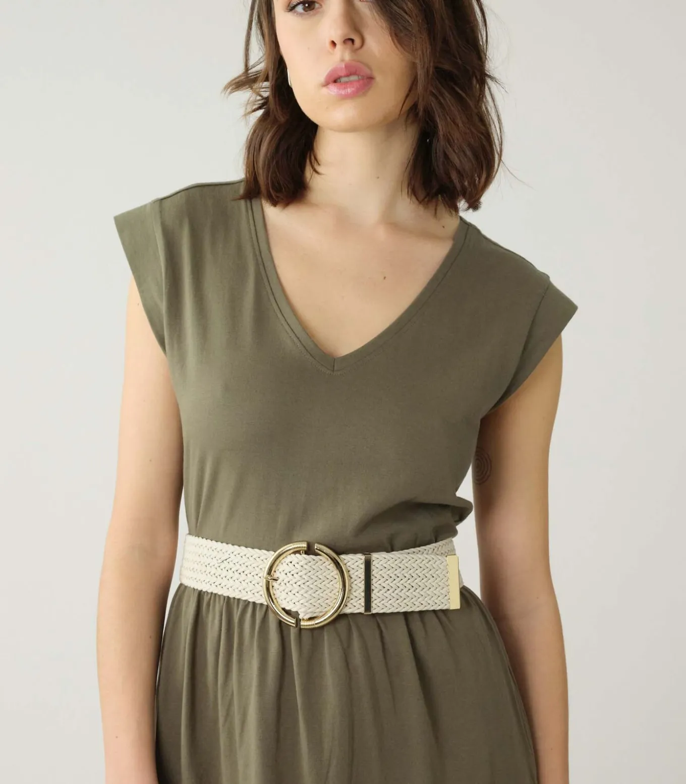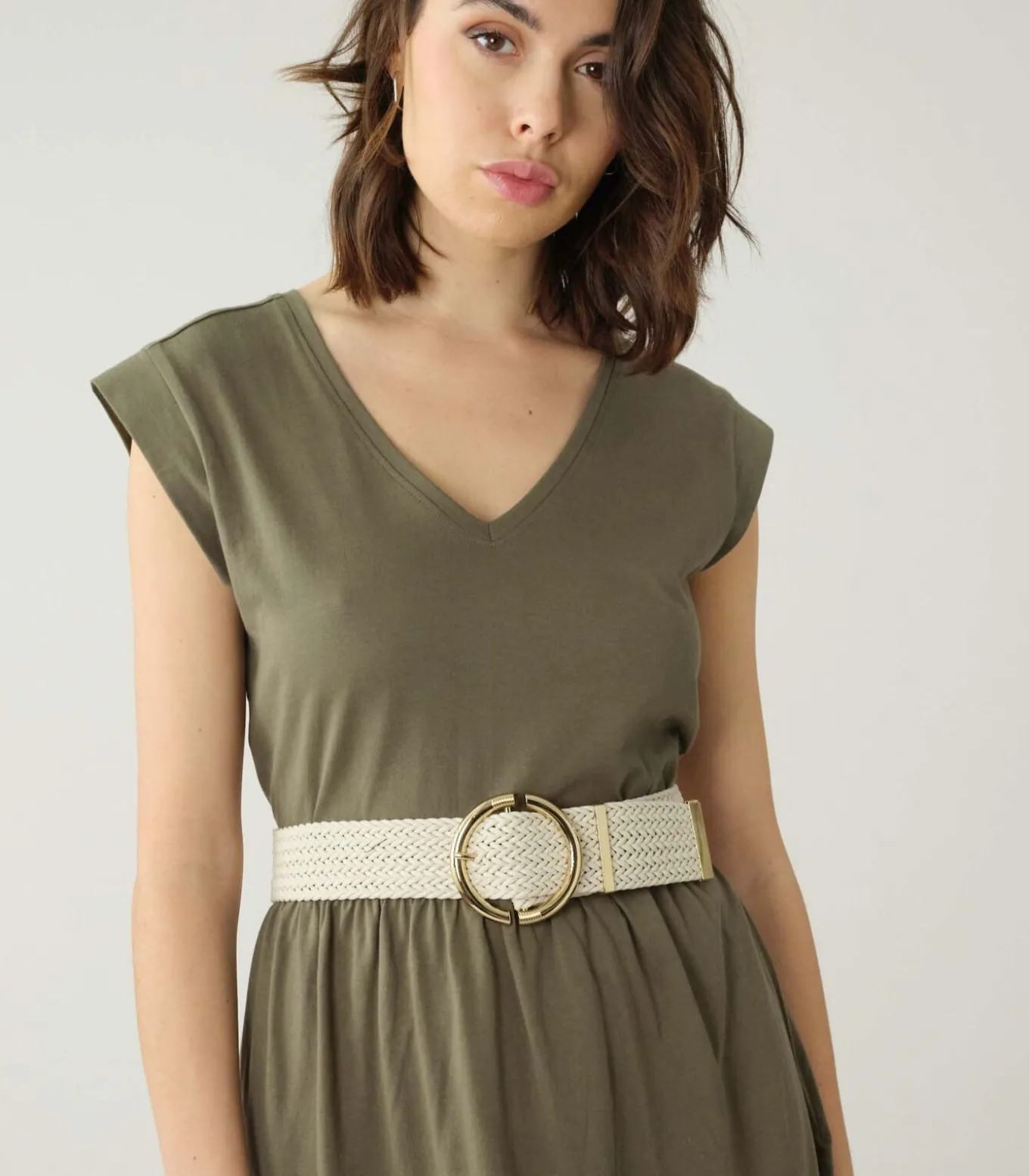 Fijn, verfijnd vlechtwerk. Ronde gouden gesp. Gemakkelijk verstelbaar. Een natuurlijke kleur die gemakkelijk te matchen is. Kies de CRISTINA riem om elke look te verbeteren! Het is het perfecte accessoire om een vleugje chic en verfijning toe te voegen aan je outfits. Met zijn gevlochten design en gouden ovale gesp belichaamt hij tijdloze elegantie. Deze riem is gemakkelijk te verstellen om je silhouet te verbeteren. Hij is ideaal om bijvoorbeeld te dragen bij een bohemien of etnische jurk, of om een vloeiende blouse stijlvol aan te trekken. Combineer de CRISTINA riem met je favoriete kledingstukken voor een verfijnde, vrouwelijke look. Er is geen twijfel mogelijk, het is een must om een trendy garderobe compleet te maken.