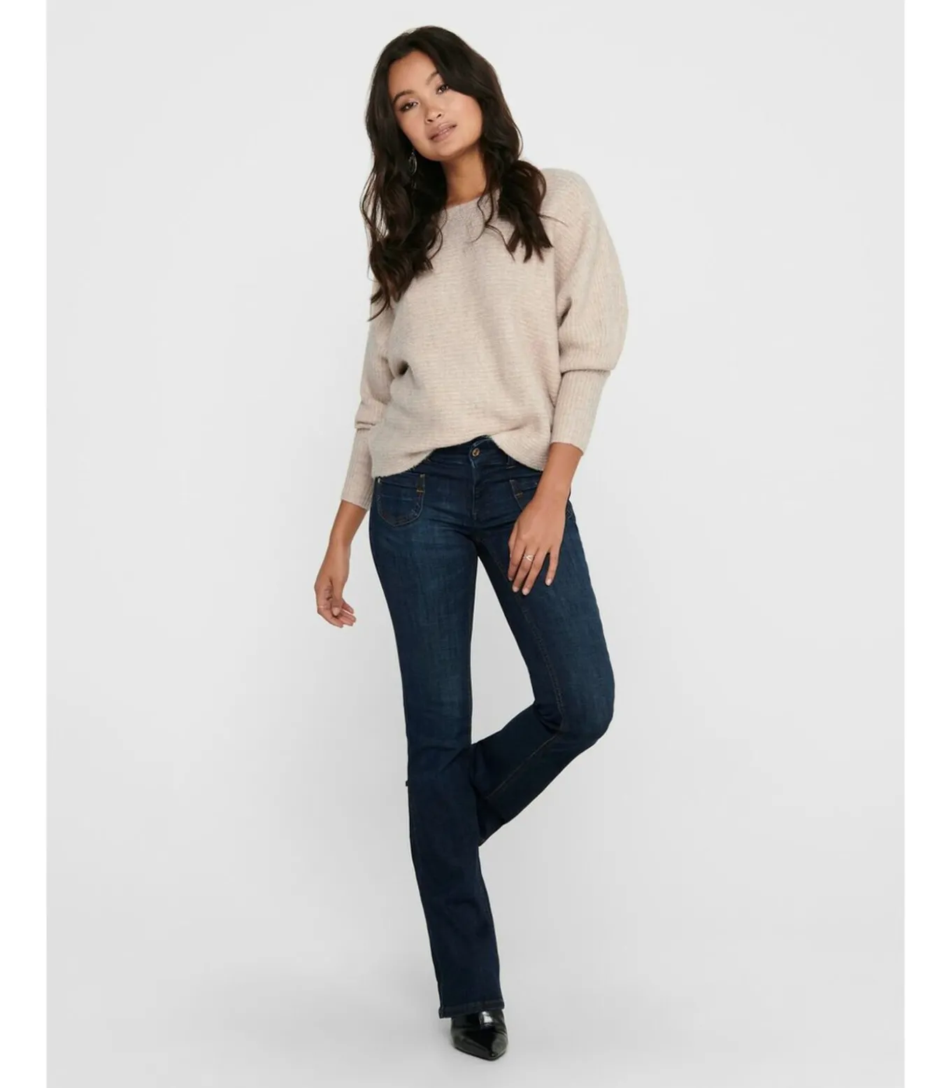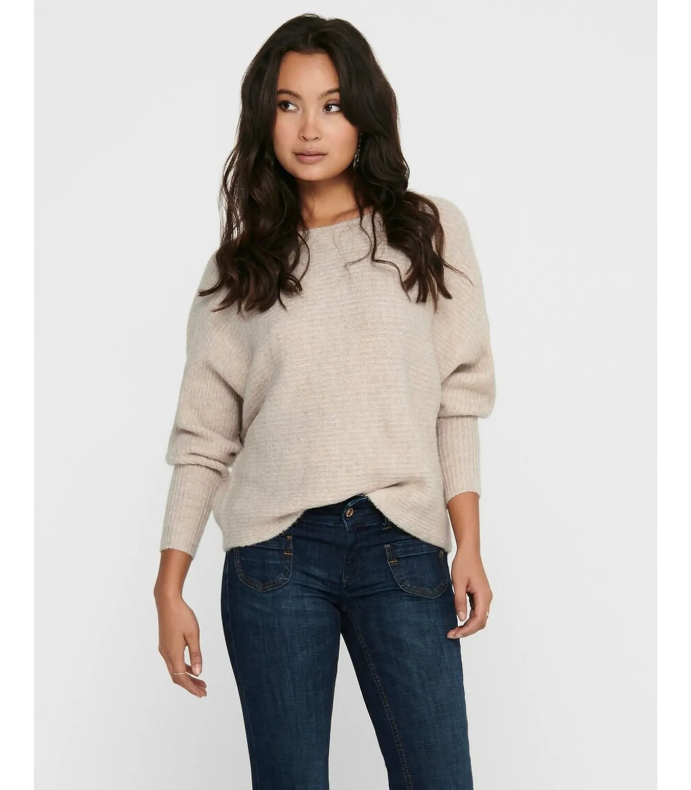 – Gebreide trui– Boothals– Geribde rand onderaan de mouwen– Een losse pasvorm– Lengte: 55 cm in maat M– Het model draagt maat S