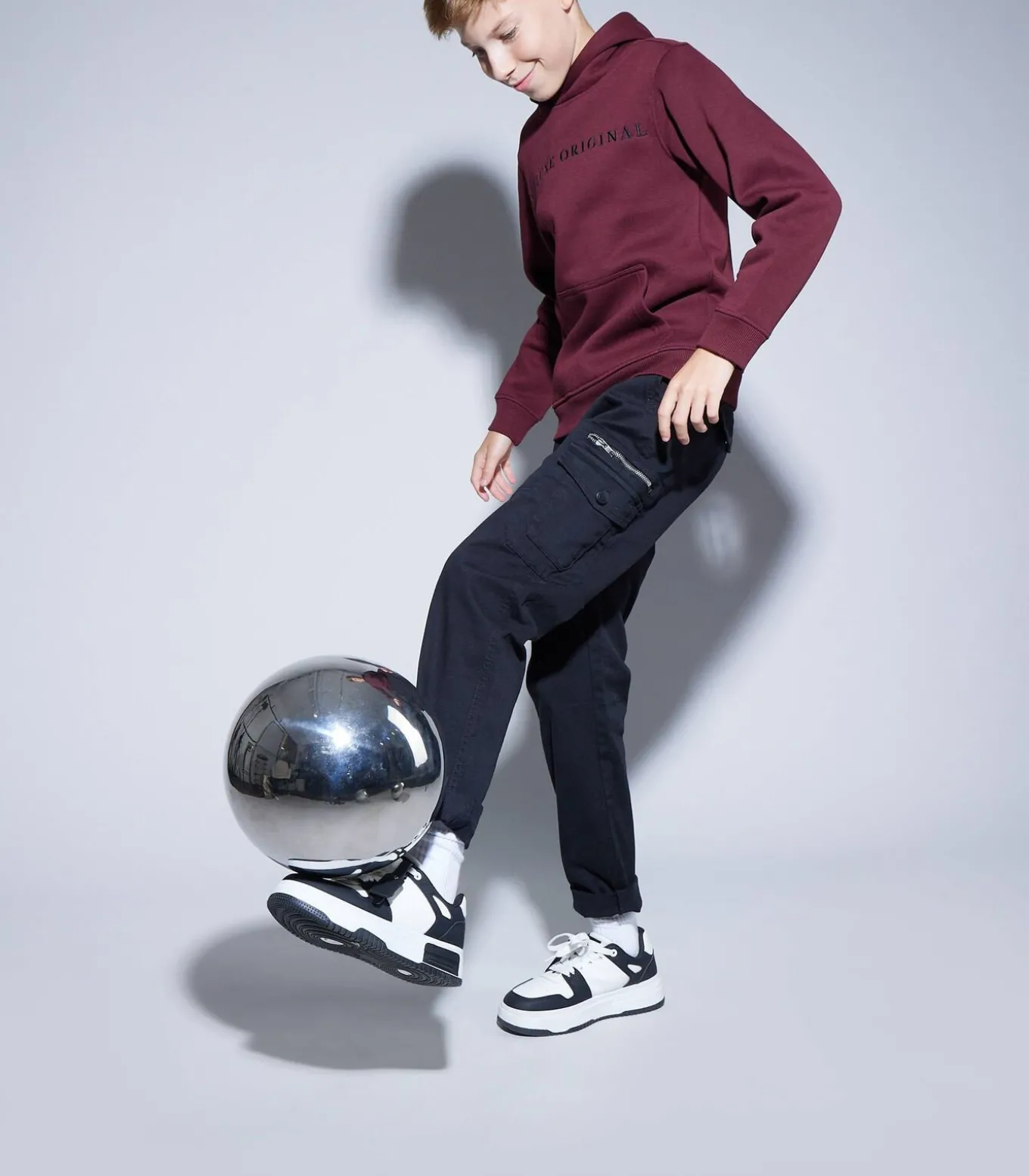 DANASON cargobroek voor jongens. Deze casual broek heeft een rechte, licht taps toelopende pasvorm met opgestikte klepzakken aan de achterkant en zijkanten, en een ritszak op elk dijbeen voor een utilitaire look. Gemaakt van een katoenrijke stof, comfortabel voor dagelijks gebruik. Met een knoop– en ritssluiting aan de voorkant, riemlussen en een getailleerde pijpzoom. Ideaal voor een urban, functioneel silhouet.