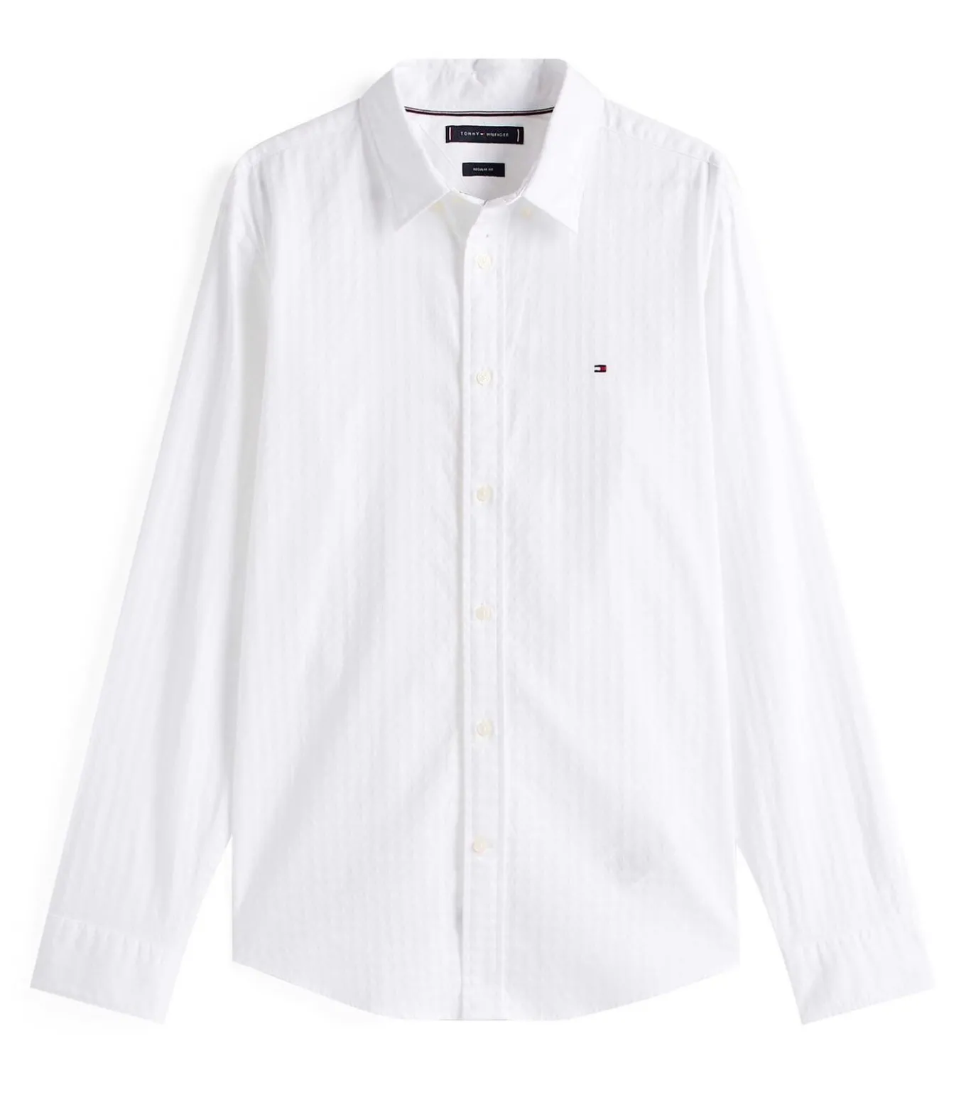 Kleur: Th Optic White. Samenstelling: 100% katoen. Mouwen: Lang. Halslijn: Semi–gespreide kraag. Pasvorm: Regular Fit. Sluiting: Knoopsluiting aan de voorkant. Details: Dobby stof, afgeronde manchetten met knoop, geborduurde Tommy Hilfiger–vlag op de borst. Gebruik: Perfect voor praktische en elegante kleding, geschikt voor zowel casual als semi–formele looks.