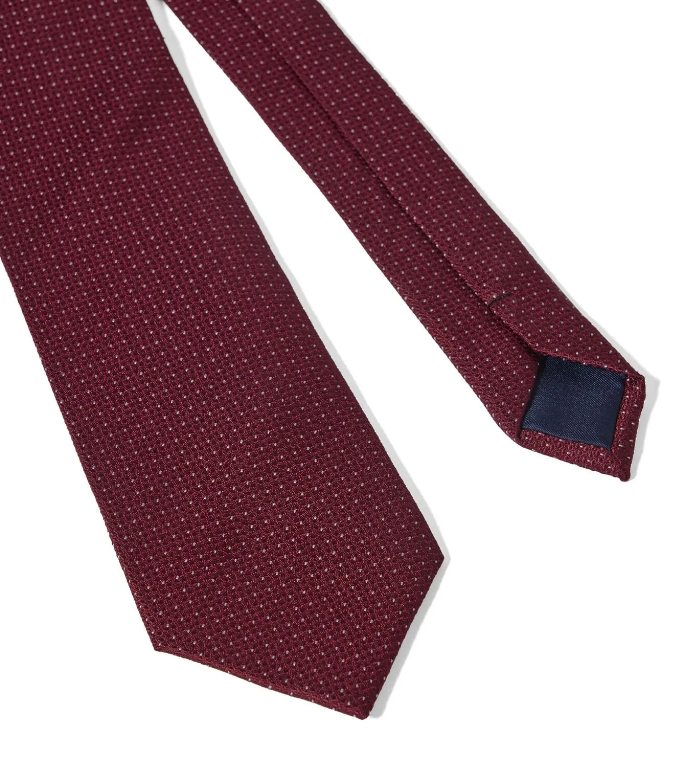 Deze zijden stropdas in bordeauxrode tinten heeft een gestippelde afwerking. Hij is perfect te combineren met eender welk hemd, met of zonder patroon, voor een moderne look. Ideaal voor vergaderingen of bijzondere gelegenheden. Geborduurd Polo Club–logo aan de achterzijde van de das en label met logo.