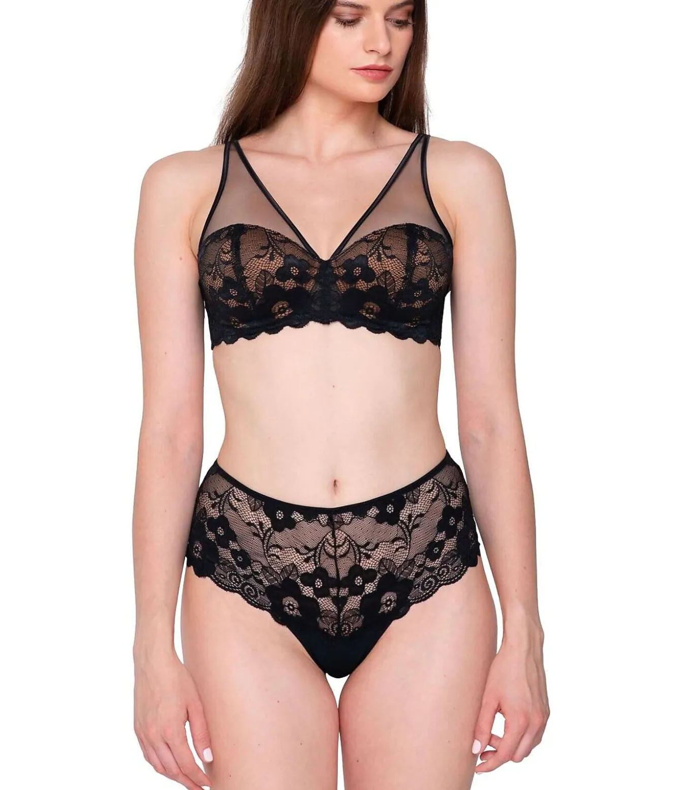 Pandora combineert bloemenjacquardkant met tule en creëert zo een luxueuze stijl met een vleugje romantische vrouwelijkheid. Gemaakt om te verbeteren en comfort en ondersteuning te bieden.[Beha wordt apart verkocht. Topje en broekje worden apart verkocht. Kousen en andere accessoires die het model op de foto’s draagt, zijn niet inbegrepen].