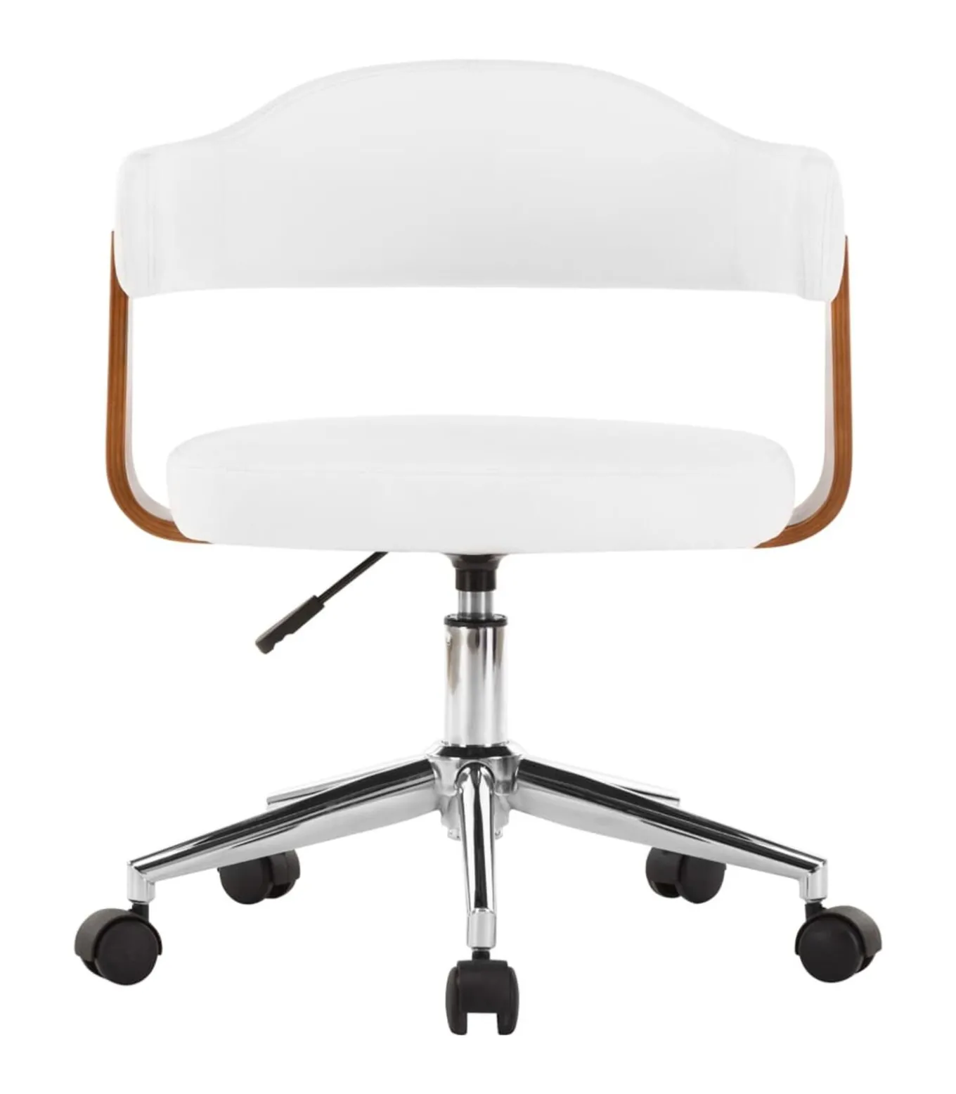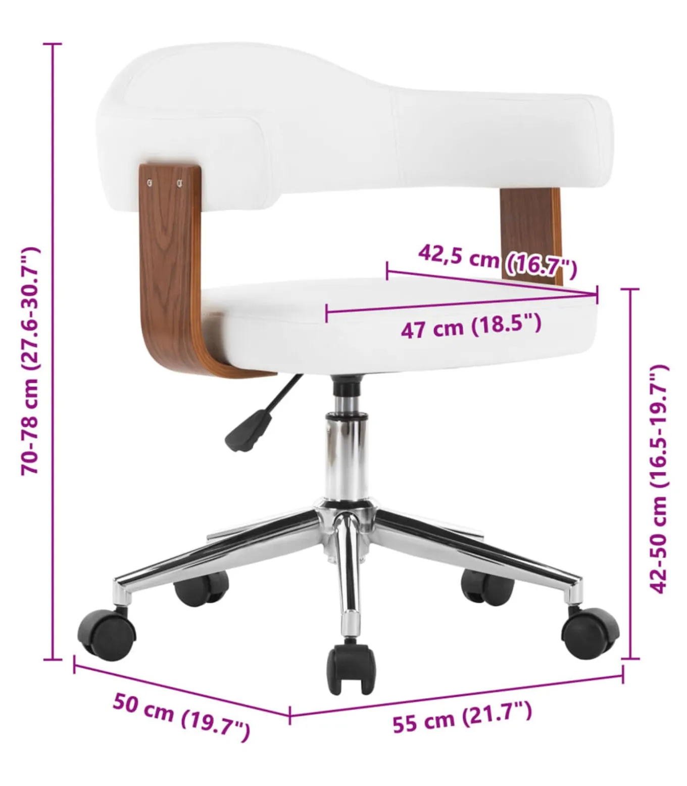 Hij biedt een comfortabele plek voor je gezin om te dineren in de eetkamer of uit te rusten in de woonkamer. De zitting en de rugleuning zijn ergonomisch ontworpen en bekleed met zacht kunstleer, waardoor de stoel zeer comfortabel is. Het houten frame en de stalen poten dragen bij aan de duurzaamheid en de esthetische uitstraling. De stoel is 360 graden draaibaar en in hoogte verstelbaar dankzij het gasveermechanisme.
