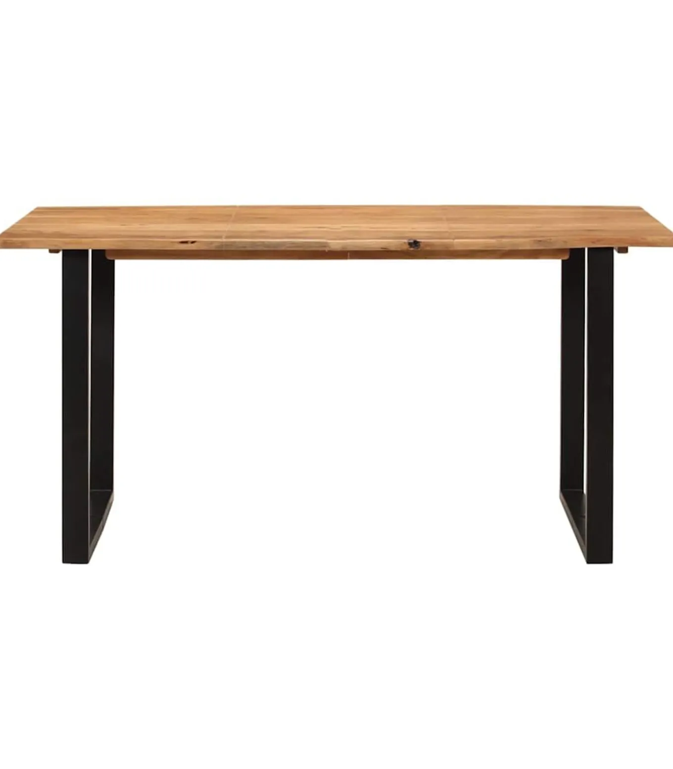 Deze eettafel is gemaakt van massief acaciahout, een tropisch hardhout dat bekend staat om zijn stevigheid en rijke nerven. De levendige vorm en de randen van het tafelblad zijn bewust niet bewerkt, zodat het oorspronkelijke karakter en de natuurlijke uitstraling van de boom behouden blijven! Elke stap van het proces wordt met de grootste zorg uitgevoerd, of het nu polijsten, schilderen of lakken is. De stalen poten maken de industriële uitstraling compleet en dragen bij aan de stevige constructie.