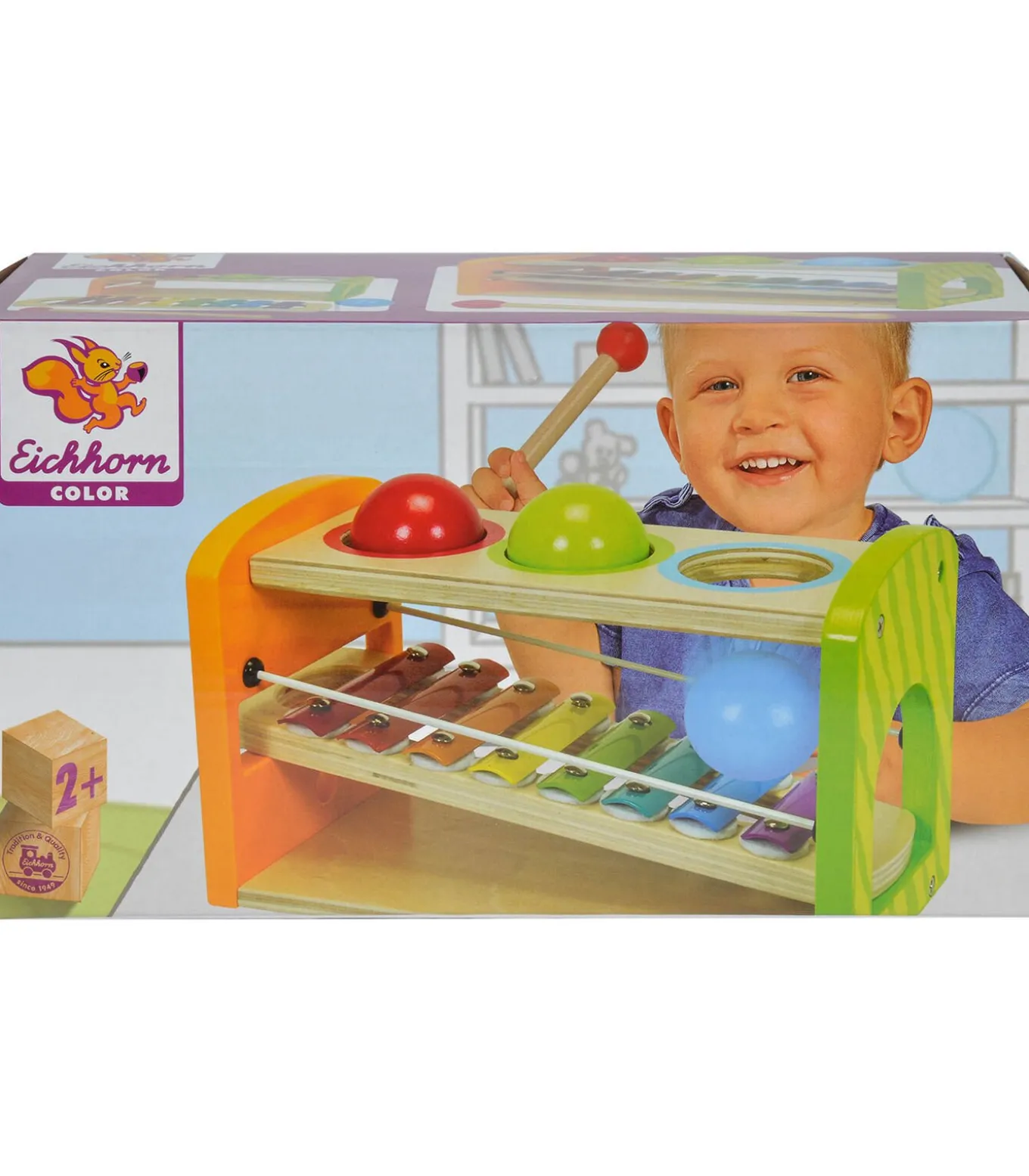 Eichhorn houten hamerbank met xylofoon – educatief speelgoedDe Eichhorn houten hamerbank met xylofoon is het perfecte speelgoed voor nieuwsgierige kinderen die graag ontdekken en muziek maken. Met deze kleurrijke hamerbank kun je niet alleen de ballen door de openingen slaan en ze zien rollen, maar ook het plankje omdraaien en genieten van de vrolijke klanken van de xylofoon.Dit veelzijdige speelgoed stimuleert de hand–oogcoördinatie, motoriek én het muzikale gevoel van je kind. Gemaakt van stevig hout en geschikt voor kinderen vanaf 2 jaar, zorgt de Eichhorn hamerbank met xylofoon voor urenlang speelplezier. Laat je kind experimenteren, leren en vooral veel plezier beleven!Extra informatie3–in–1: hamerbank, ballenbaan en xylofoonGemaakt van duurzaam houtStimuleert motoriek en muzikaliteitGeschikt voor kinderen vanaf 2 jaar