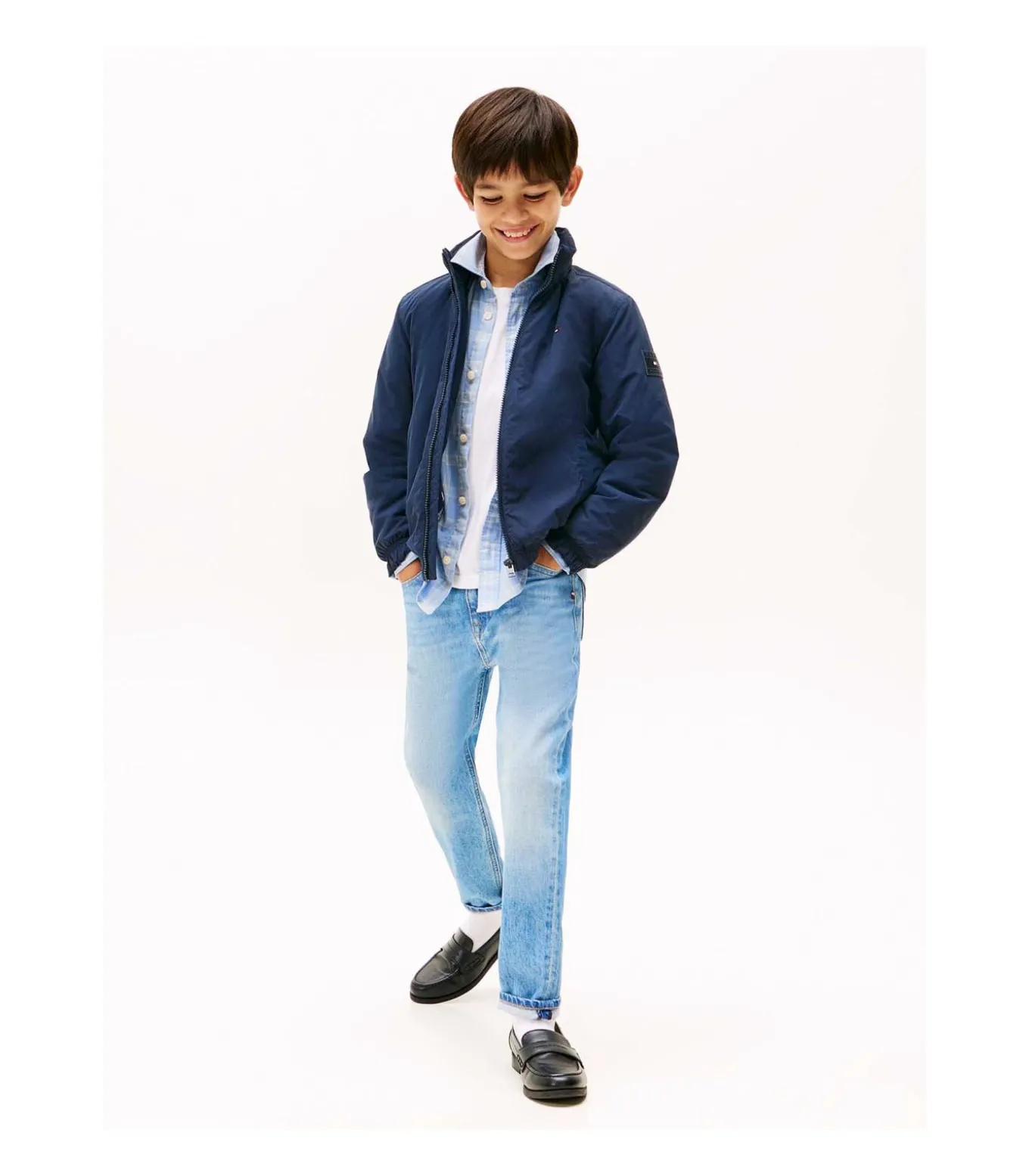Kleur: Dark Night Navy. Samenstelling: 100% nylon. Mouwen: lang. Halslijn: hoge kraag. Pasvorm: regular fit. Details: gewatteerd en gewatteerd, ritssluiting, elastische zoom en manchetten, steekzakken, Tommy Hilfiger–vlag op de borst en logopatch op de mouw. Gebruik: perfect als lichtgewicht jack voor de overgangsperiode, ideaal voor school en vrije tijd.