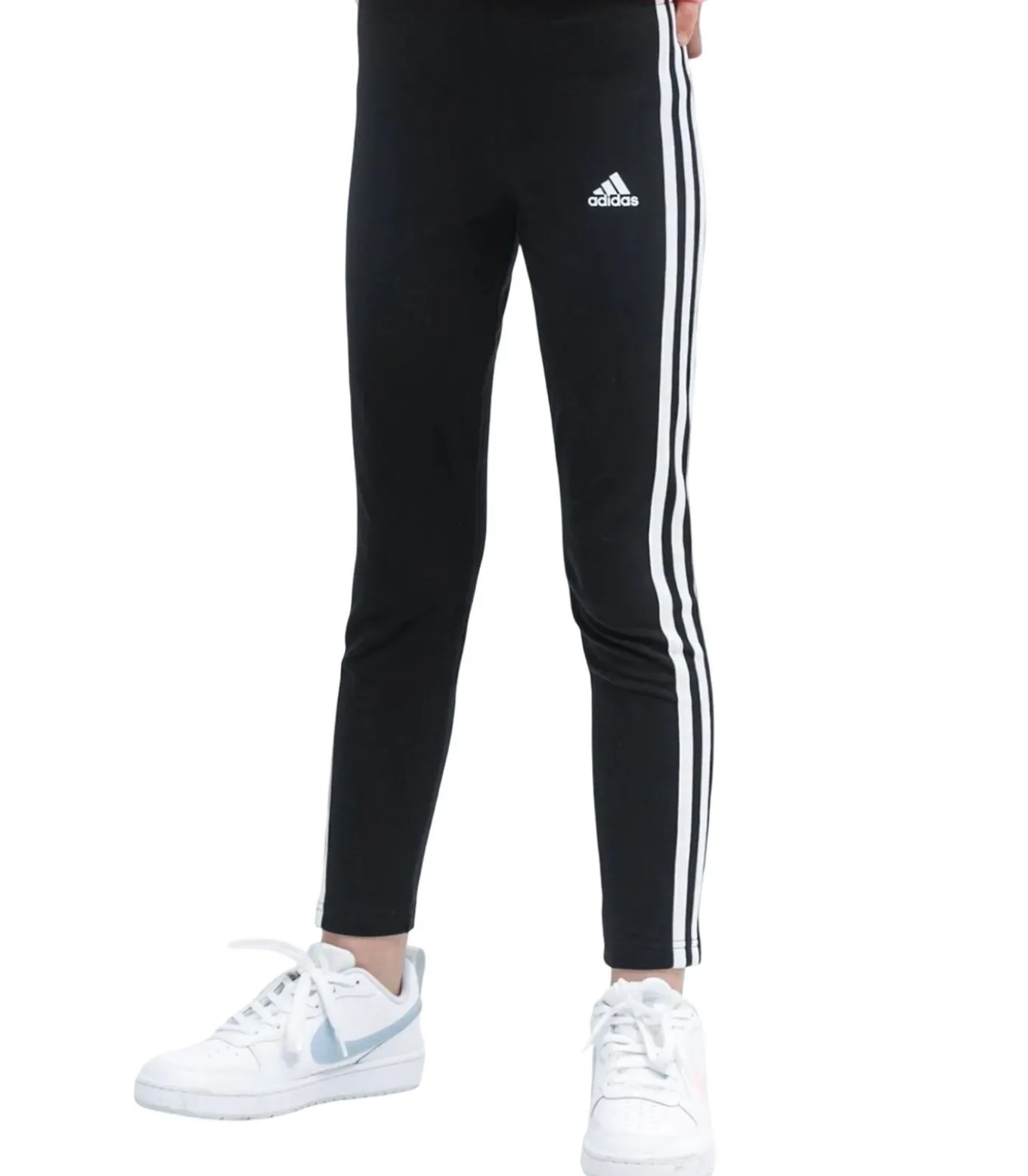 Adidas Essentials Zwarte Leggings – Uit een bekend merk krijgt u deze comfortabele leggings. Ze bestaan uit 92% katoen en 8% elastane, waardoor ze zowel stijf als flexibel zijn. Het oppervlak bestaat uit Single Jersey–stof en is voorzien van contrastende strepen en het merklogo. De taille is elastisch en halflang. U kunt deze leggings gemakkelijk aanpassen.