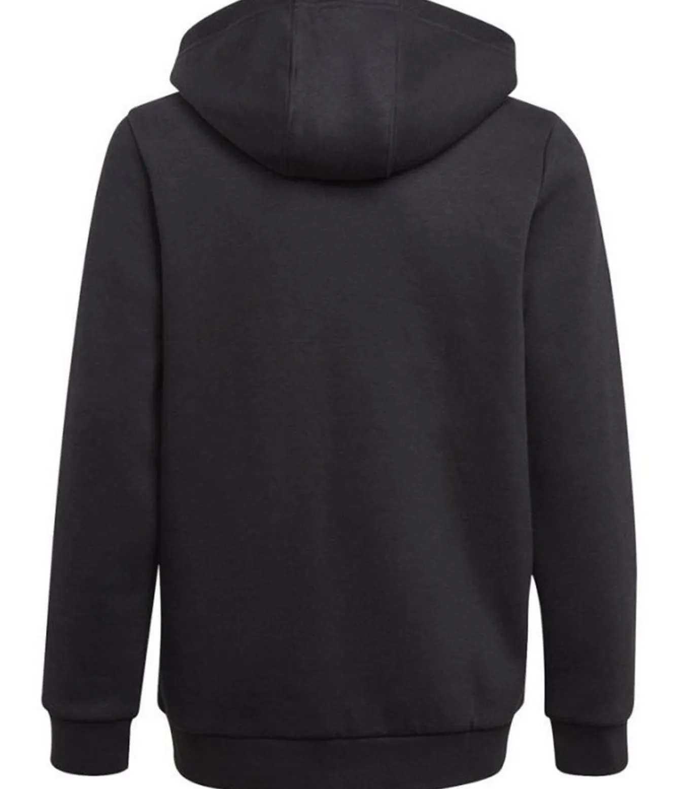 Adidas Essentials – Zwarte trui met kap en volledige ritssluiting gemaakt van 53% katoen, 36% gerecycled polyester en 11% viscose. Het stof bestaat uit vilt–like materiaal met zachte aanraking. Het ontwerp toont contrastende strepen en het logo. De zojuist gebonden kraag en mouwen hebben een kapiteinshalslijn. Deze trui is geschikt voor regelmatige gebruik en heeft één kangoeroezak. De volledige ritssluiting bevestigt de trui op elk niveau van 6 tot 14 jaar. De maten lopen van 24 inch op 6 jaar, 25 inch op 8 jaar, 28 inch op 10 jaar, 30,5 inch op 12 jaar en 34 inch op 14 jaar.