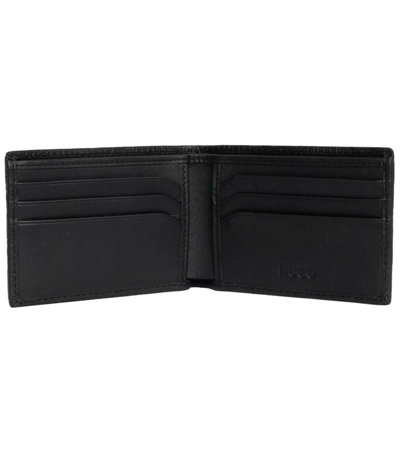 HUGO introduceert de Ethon Leather Wallet in zwart, ontworpen voor moderne functionaliteit. Hij is versierd met een merkpatroon en heeft een subtiele merkopdruk aan de binnenkant. Functioneel met vakjes voor pasjes en briefgeld, en gemaakt van hoogwaardig leer voor een lange levensduur. Stijlvol en praktisch, deze HUGO–portemonnee weerspiegelt de eigentijdse esthetiek van het merk.
