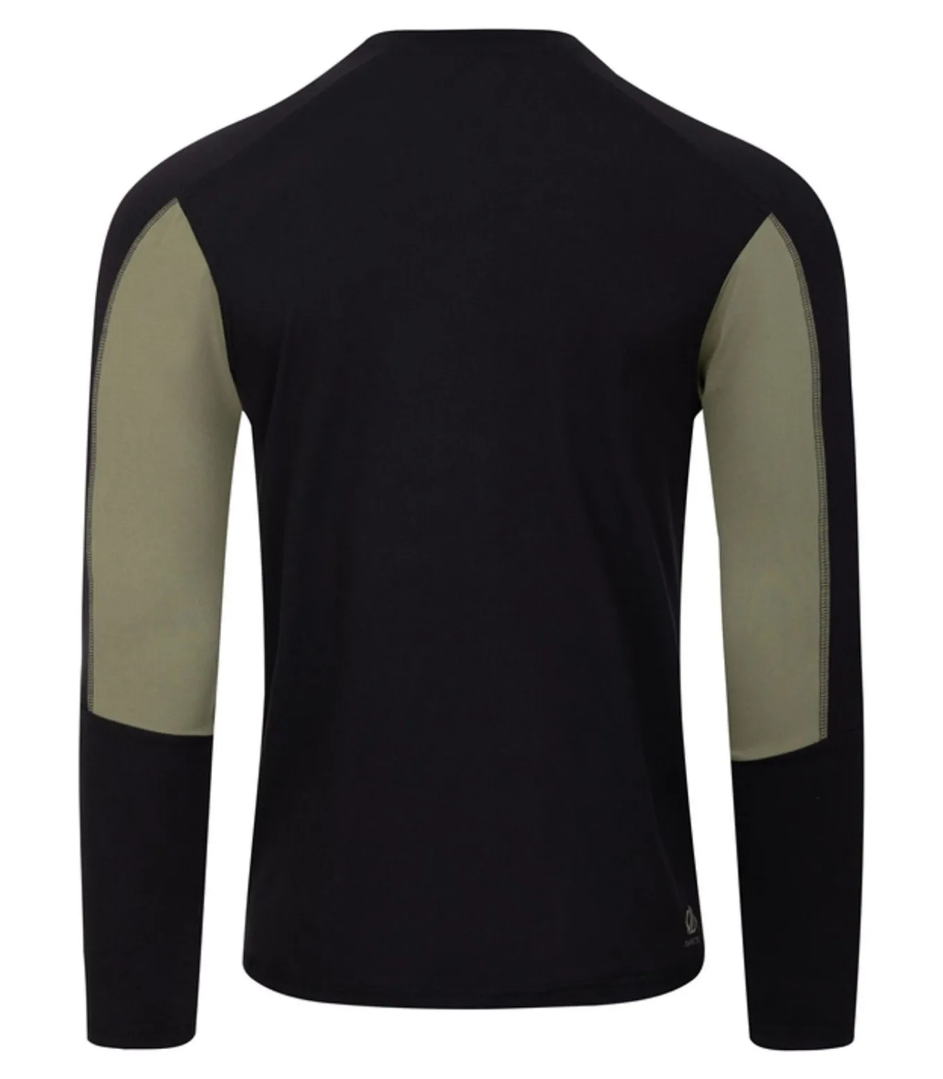 Dare 2B Exchange III basislaag zwart is een kledingstuk gemaakt van polyester en voorzien van een geborsteld Q Wic stof. Het ontwerp van dit product omvat een logo, mouwprint en tweekleurig patroon. De hals heeft een crew neck en de mouwen zijn lang. Dit kledingstuk is geschikt voor het trekken (pull on) en voorzien van stoftechnologie met anti–bacterieel, vochtafvoerend, geurcontrole, sneldrogend, zacht en thermisch eigenschappen. Het pakket bevat één zwembroekje en één topje. Het lengte wordt ondersteund door een elastiek waistline. De maten variëren van XS (36 in.) tot 3XL (51 in.).